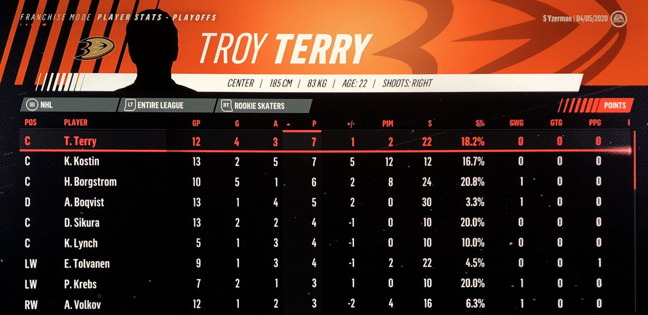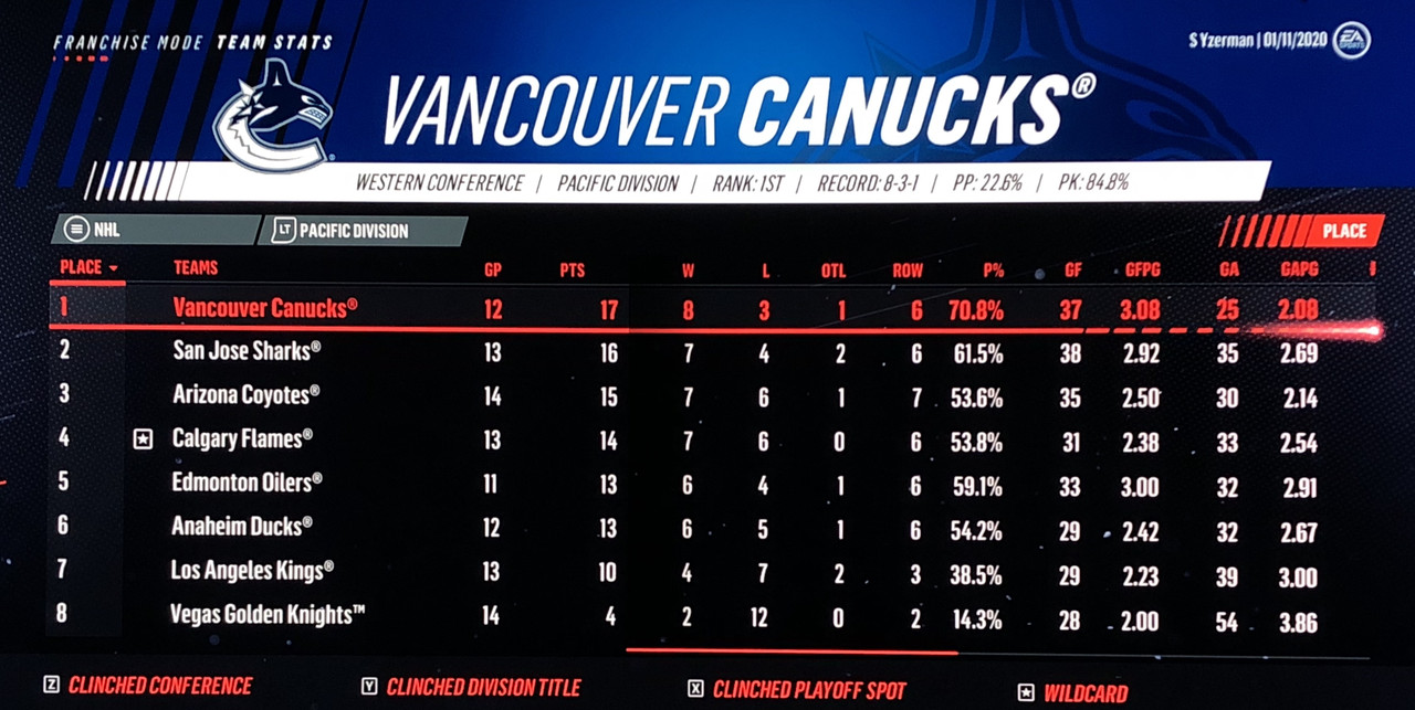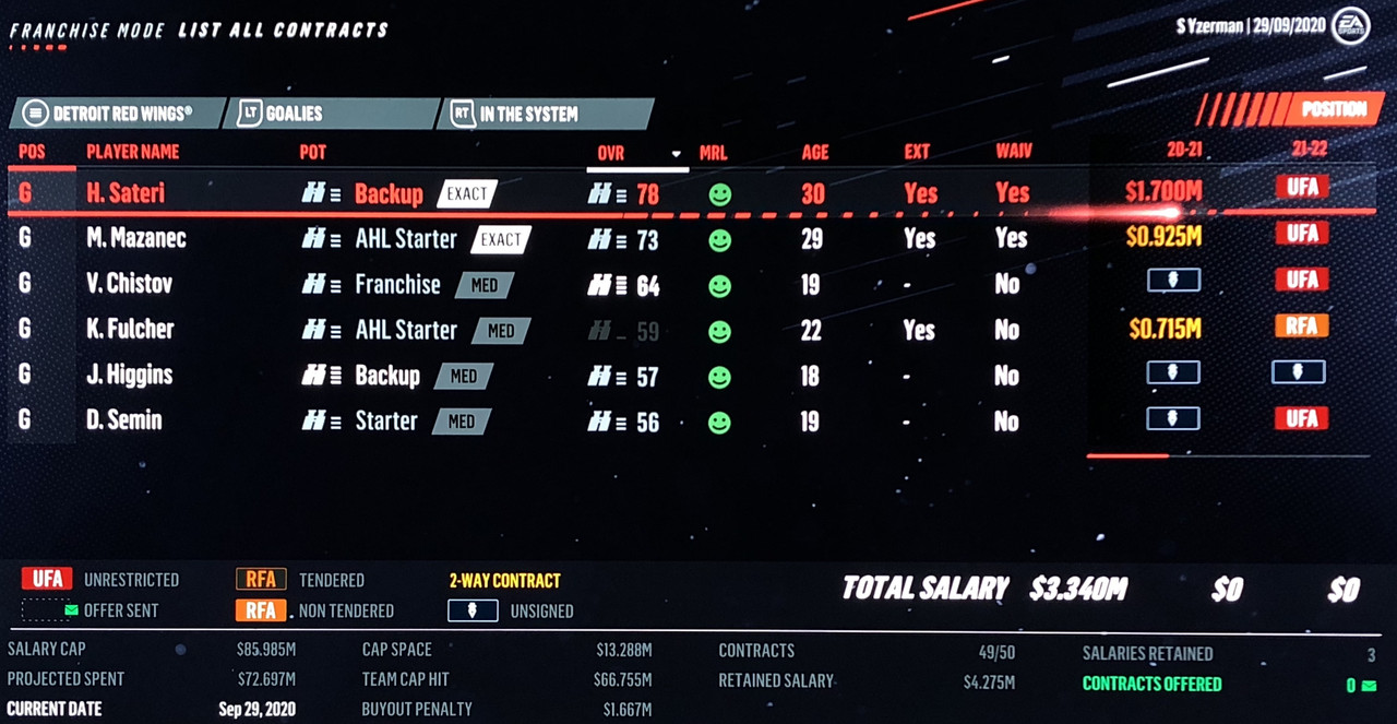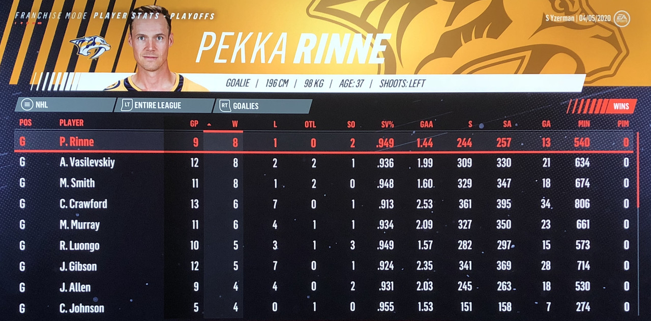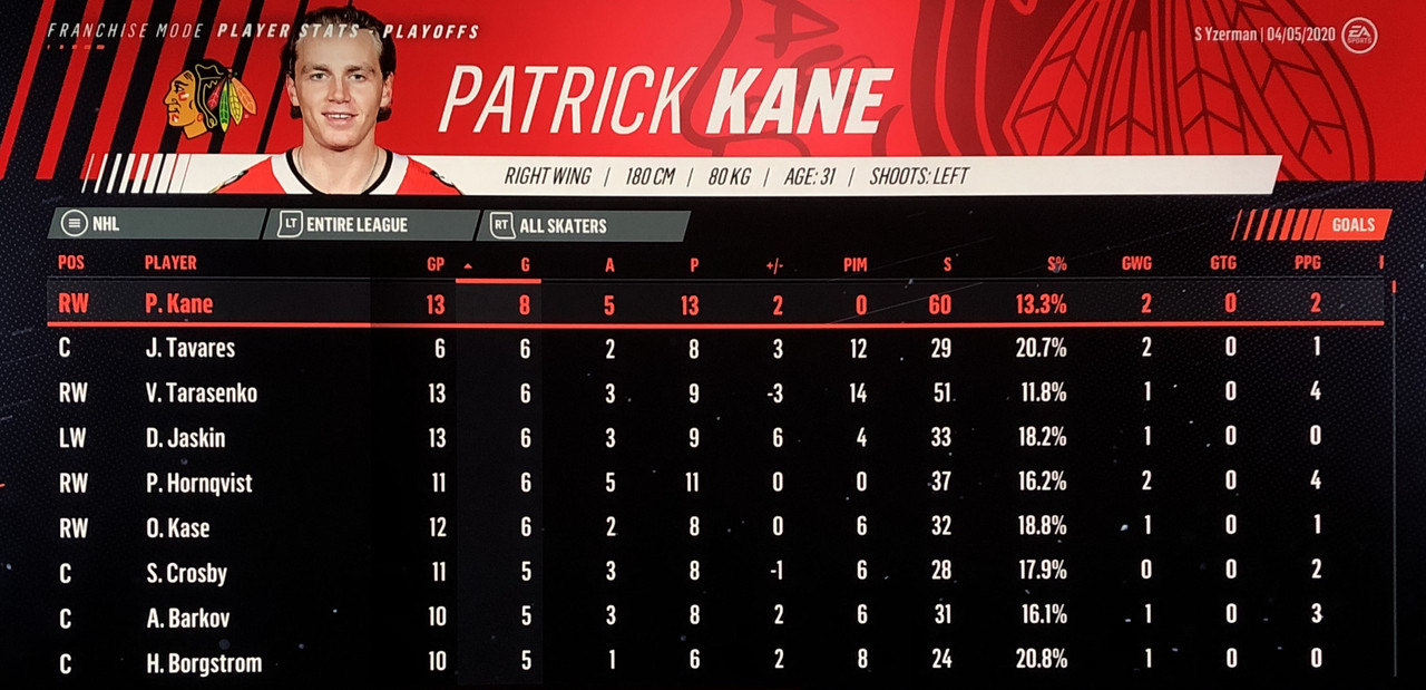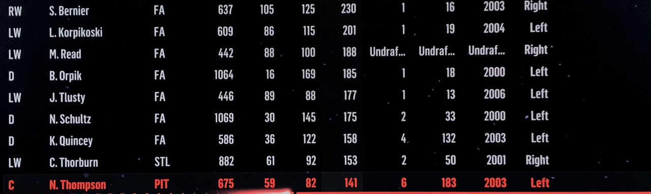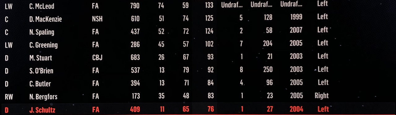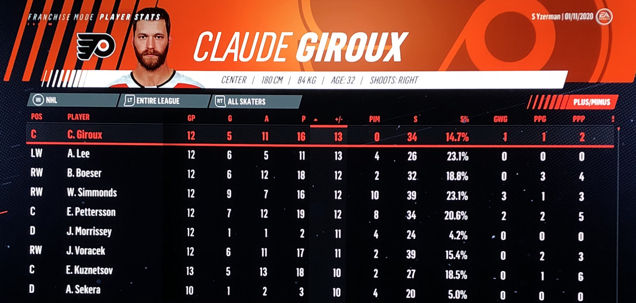 If we keep winning, my thoughts are to trade early, say around November or December. The 2 regular roster guys I have in mind are Andreas Athanasiou (which sucks because I’m a huge fan in real life) &/or Alex Edler, both of whom could make up the lion share of a deal & I think the team would still have the depth to cover the loss of them.