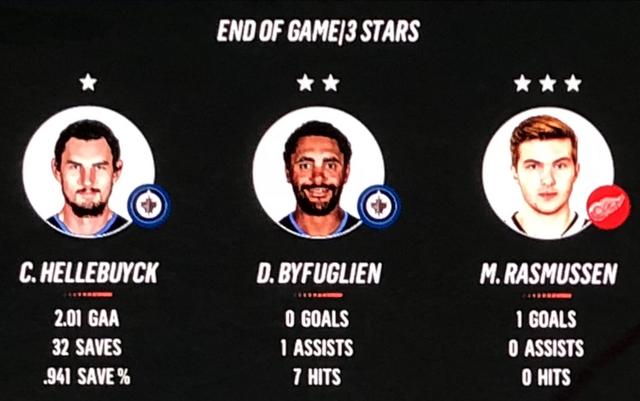 The Jets always play a physical brand of hockey & the game did take its toll on a couple of Red Wings players. Dennis Cholowski left the game early after a heavy check into the boards & did not return. Later, Evgeny Svechnikov sustained a heavy knock, but continued to play through