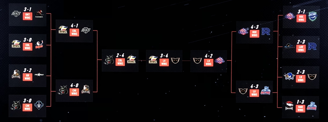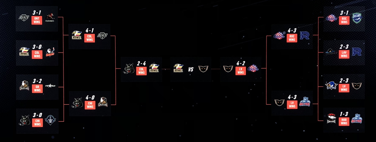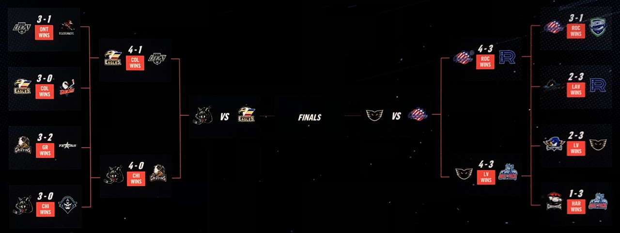 - The Colorado Eagles only drop one game against the Ontario Reign to advance.