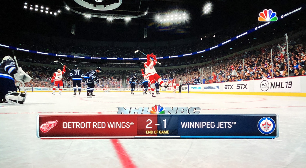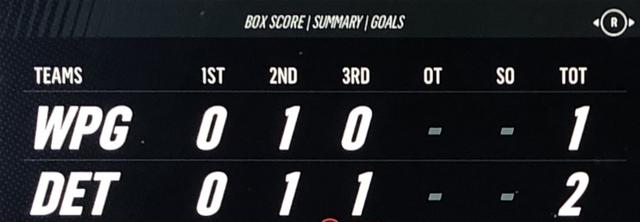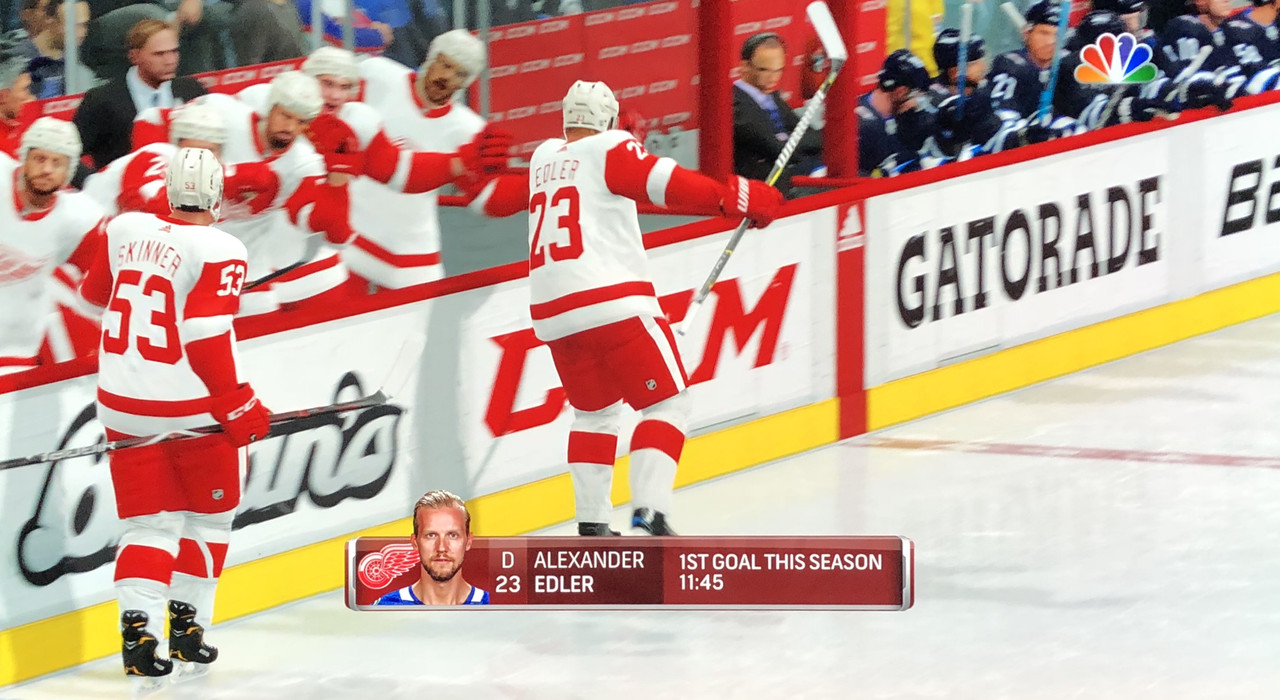 The Jets were 1st to score, with a goal from Kyle Connor in the 2nd period. Red Wings D-man, Alex Edler produced his 1st goal for the season not long after to tie the game.