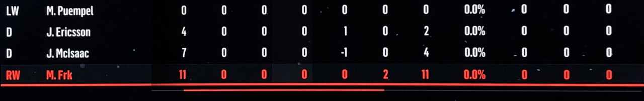 Harri Sateri got his 1st NHL start since the 2018/19 season and it did not start well for the hopeful net minder, letting in 2 goals within the 1st 4 shots on net. Sateri recovered, only allowing 1 more goal during the 3rd period and finished with 35 saves.