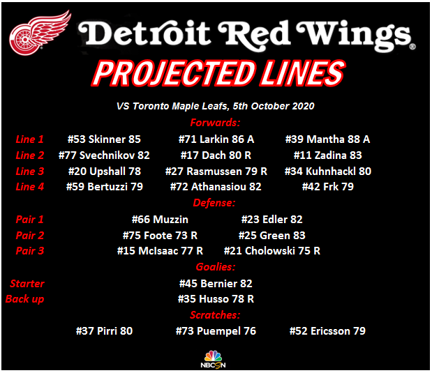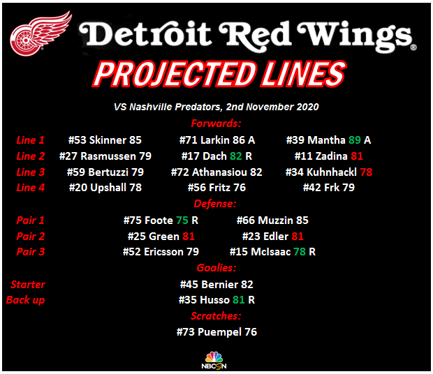 Projected Lines – Nashville Predators @ Detroit Red Wings, 2nd November 2020