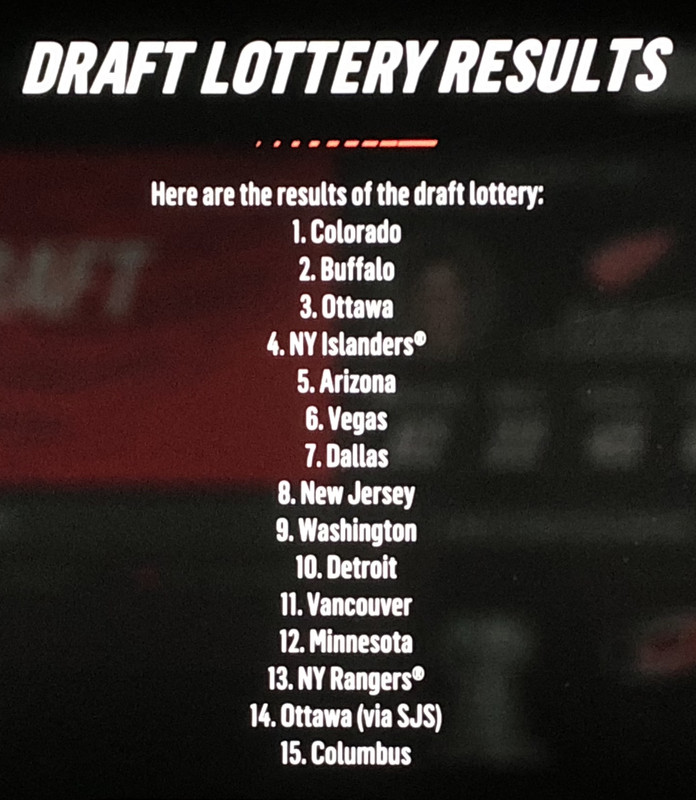 The big winner for this year’s draft is Colorado who advance from 5th to 1st in the order, whilst the NY Islanders drop 2 spots from 2nd to 4th in their 1st round choice.