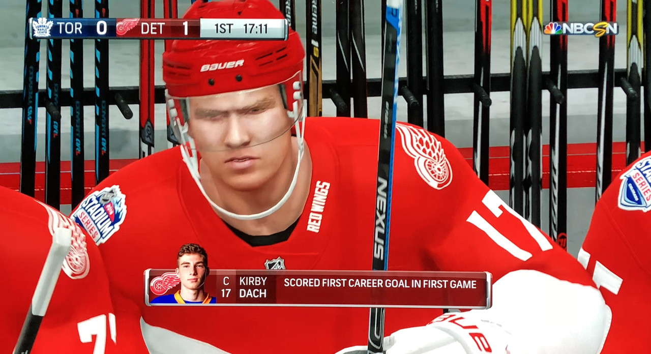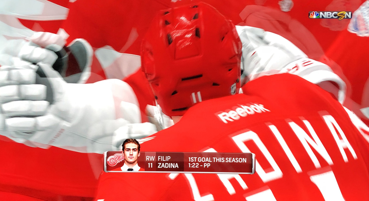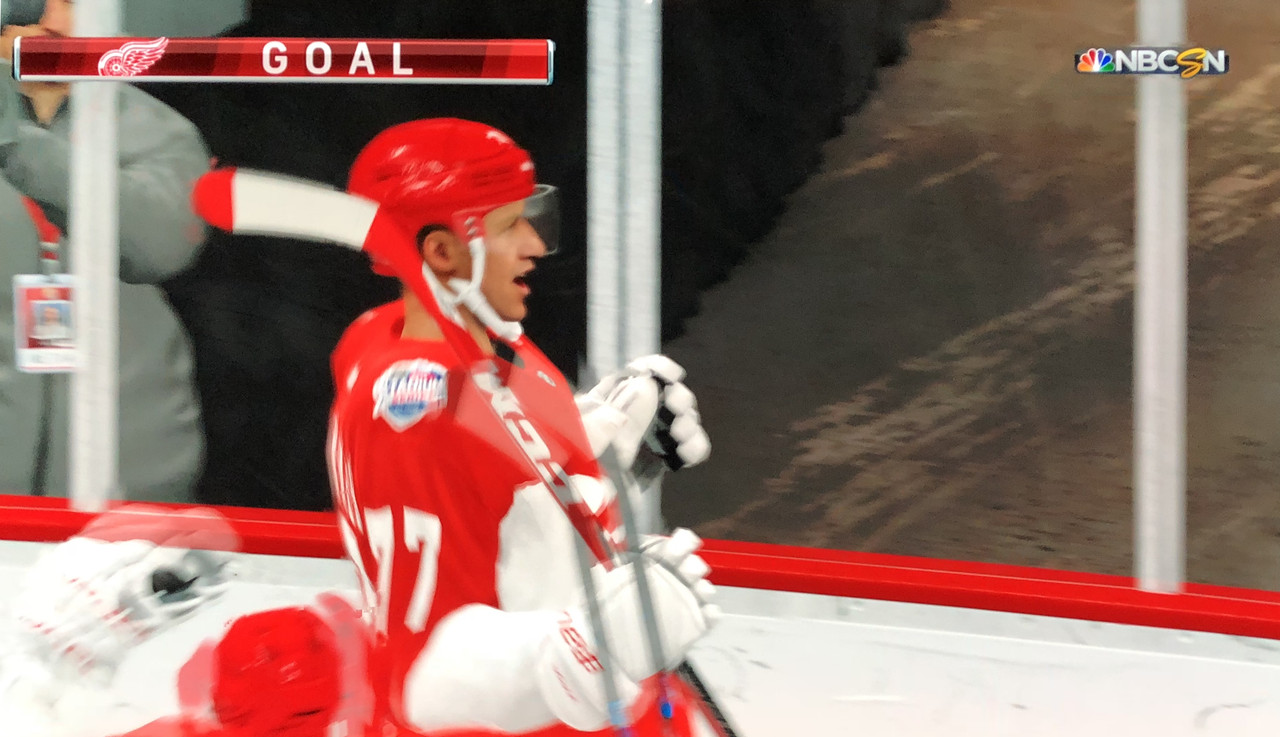 Jake Muzzin scored his 1st goal as a Red Wing, with a rocket fired between the top of the faceoff circles, beating Marc-Andre Fleury. Brandon Pirri also scored his 1st as a Red Wing in the victory.
