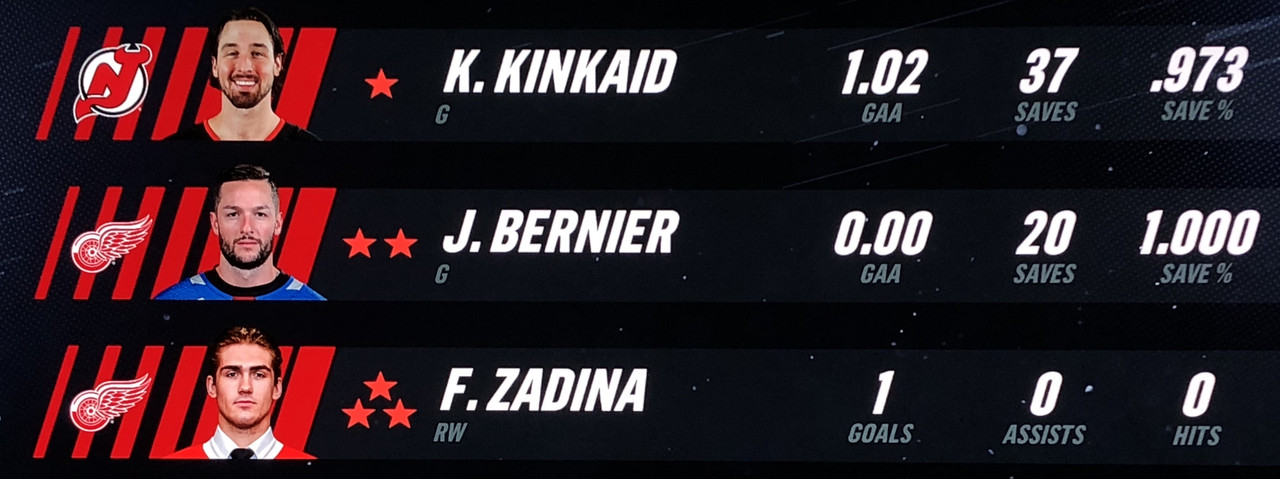 At the other end, the Wings had plenty of the puck, with the visitors taking 38 shots on goal, which is a big compliment to Devils’ Keith Kinkaid’s efforts, who made 37 saves for an impressive night by any standard. Kinkaid was awarded the game’s 1st star.