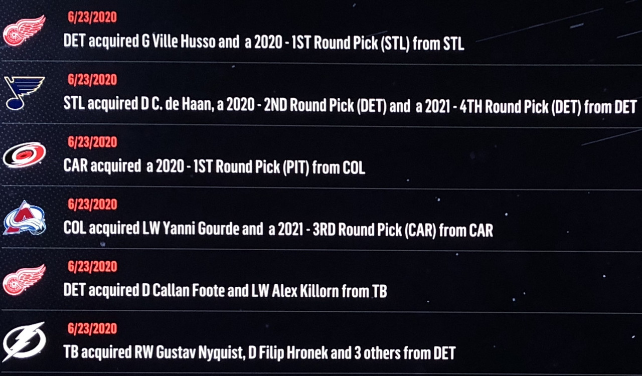After many rejections from his former Colleague @ Tampa Bay, Julien Brisebrois (now GM), the Red Wings & Lightning finally agreed on a deal, with only minutes to spare, mid-way through Washington’s pick 9, that saw 4 players & 3 picks exchange sides.