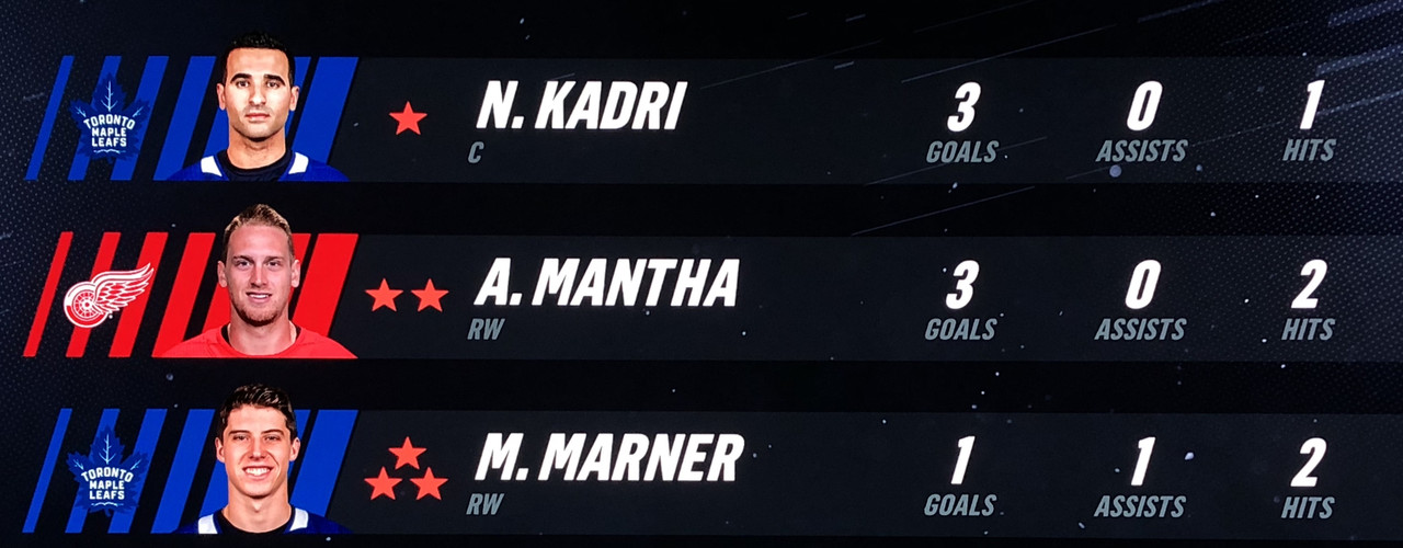 Leaf’s Nazem Kadri also tallied a hat-trick & collects a win to go with it. Johnathan Tavares & Mitchel Marner also scored for the Leafs to give the home side the final advantage.