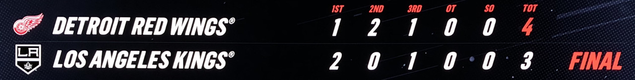 The Kings got off to a good start & were 2-1 in front at the end of the 1st period, however the home team couldn’t hold on with the Red Wings continuing to find a way to win.
