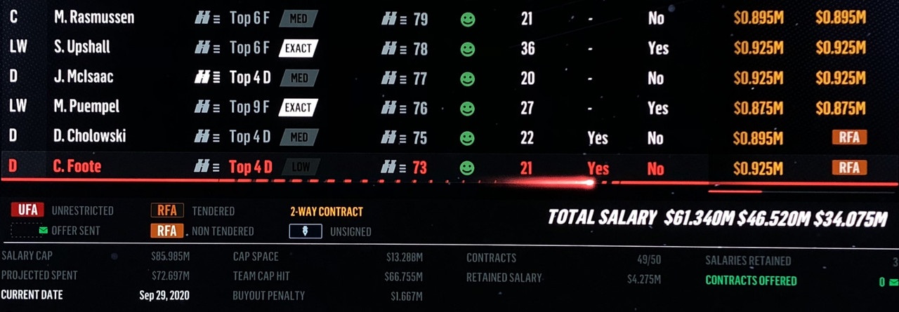 Last season we scouted Callan Foote endlessly to make sure he was Medium Elite potential. Hence when the 2020 draft commenced & we sent 2 players & 3 picks to Tampa Bay in exchange for him, I wasn’t worried.