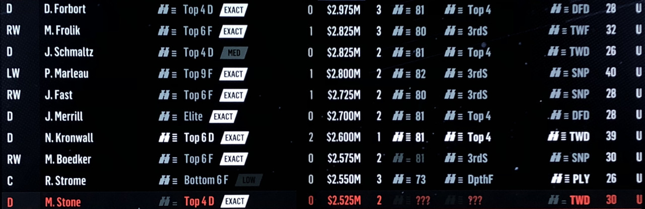 Then as pre-season kicked on, the coaching staff began to send in reports that Callan may in fact only be as good as having a low chance of being a top 4 defenseman! (See final rosters on the previous pre-season post – he is listed as a Low Top4D).