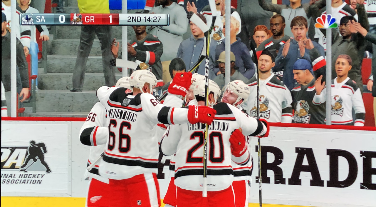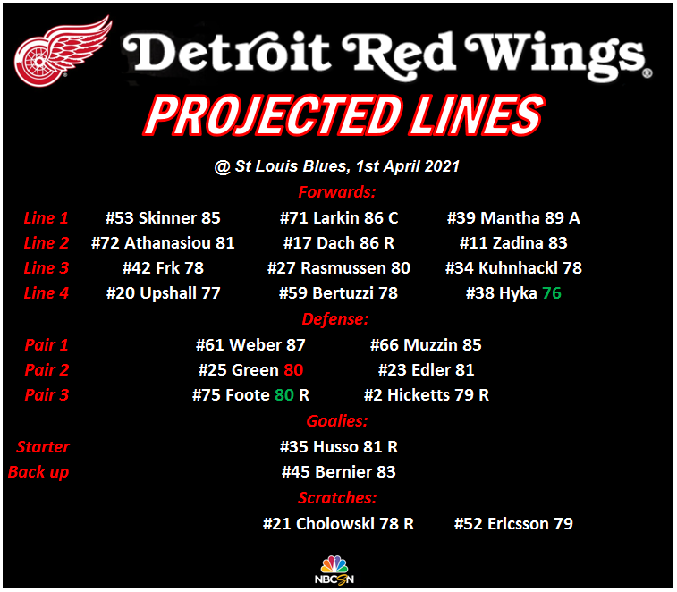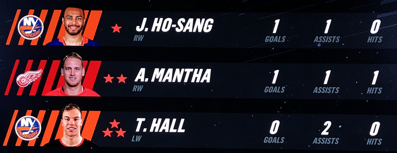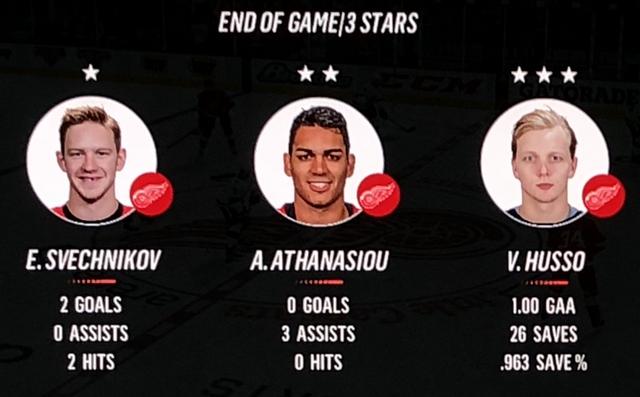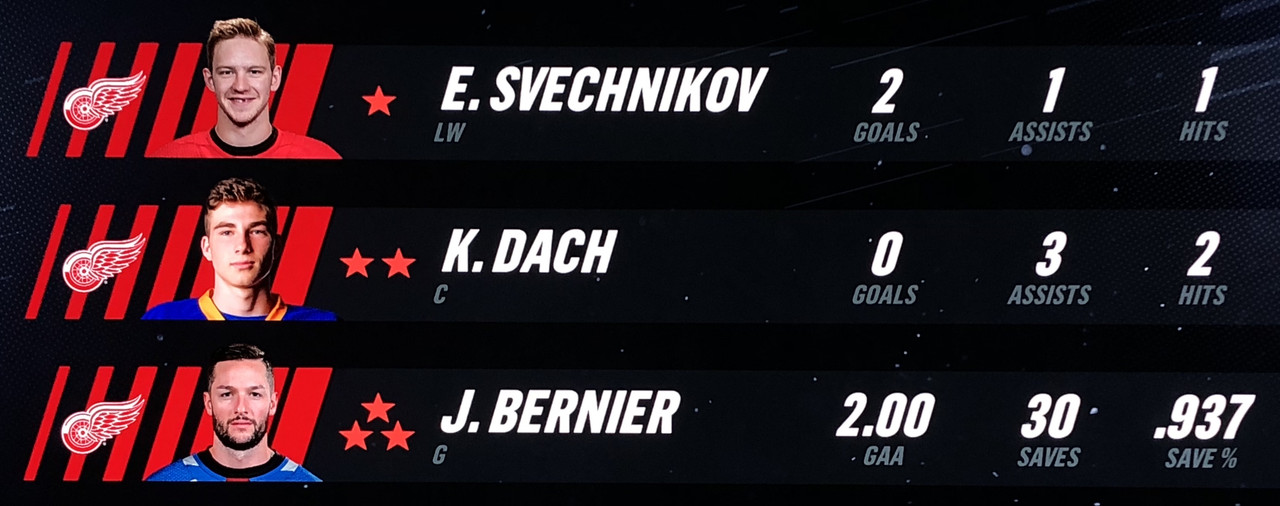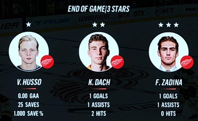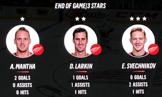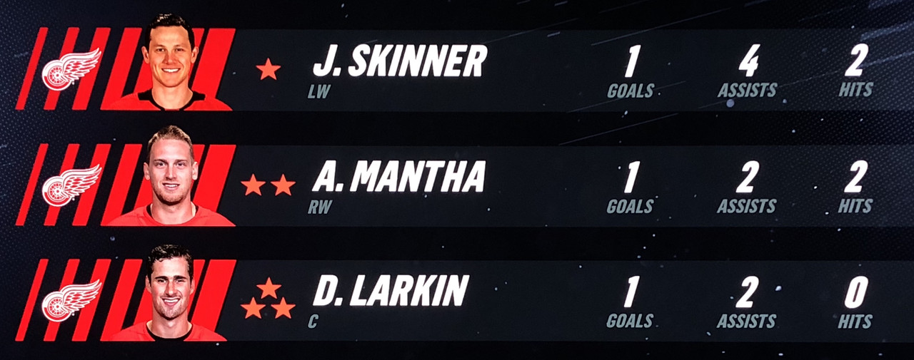 The Red Wings 1st line appears to be back in action with Skinner scoring during the 1st period & Mantha scoring twice during the 3rd.