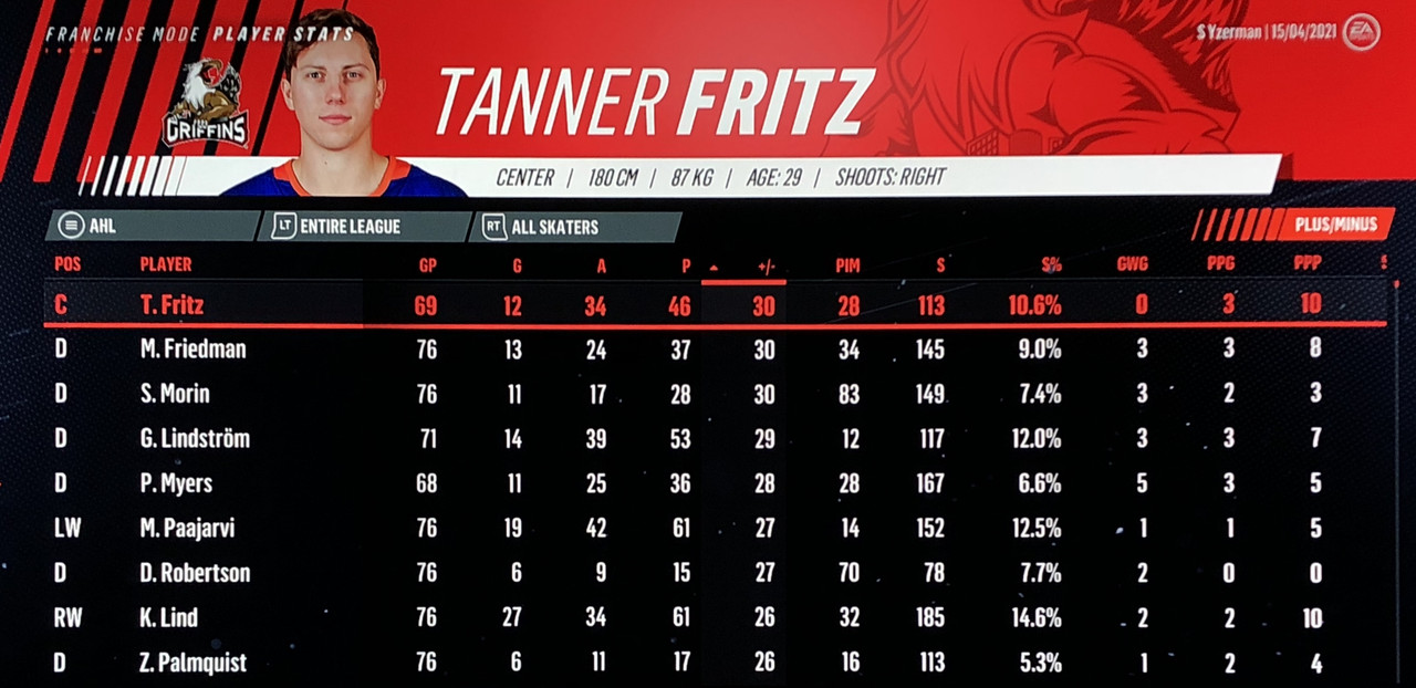The real surprise package in defense has been Gustav Lindstrom, who from the 2nd pairing for most of the season, led the team in assists & points. Lindstrom will be applying a lot of pressure from below for a start in the NHL also.