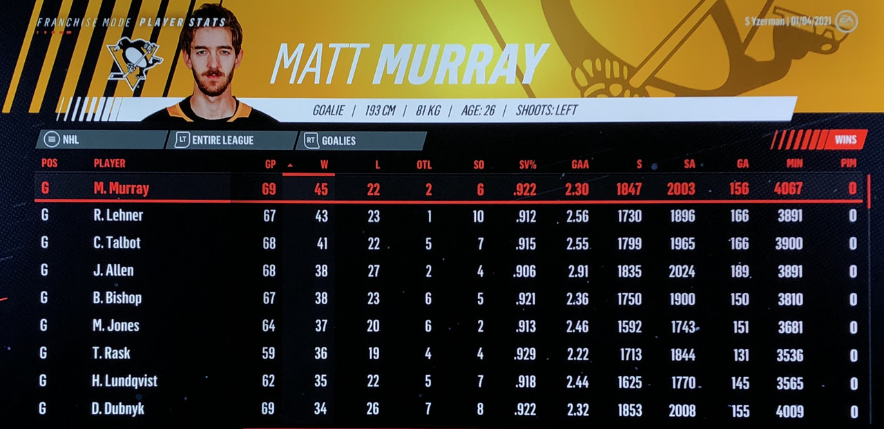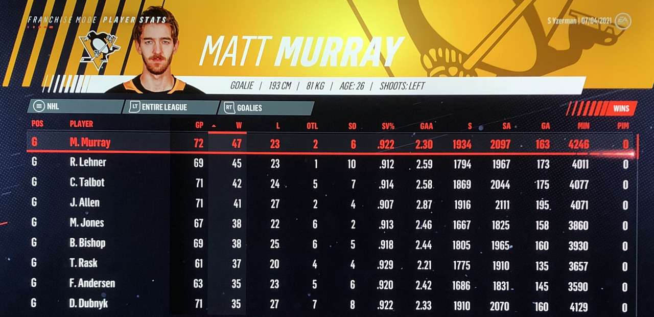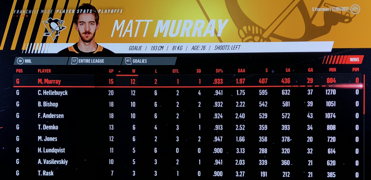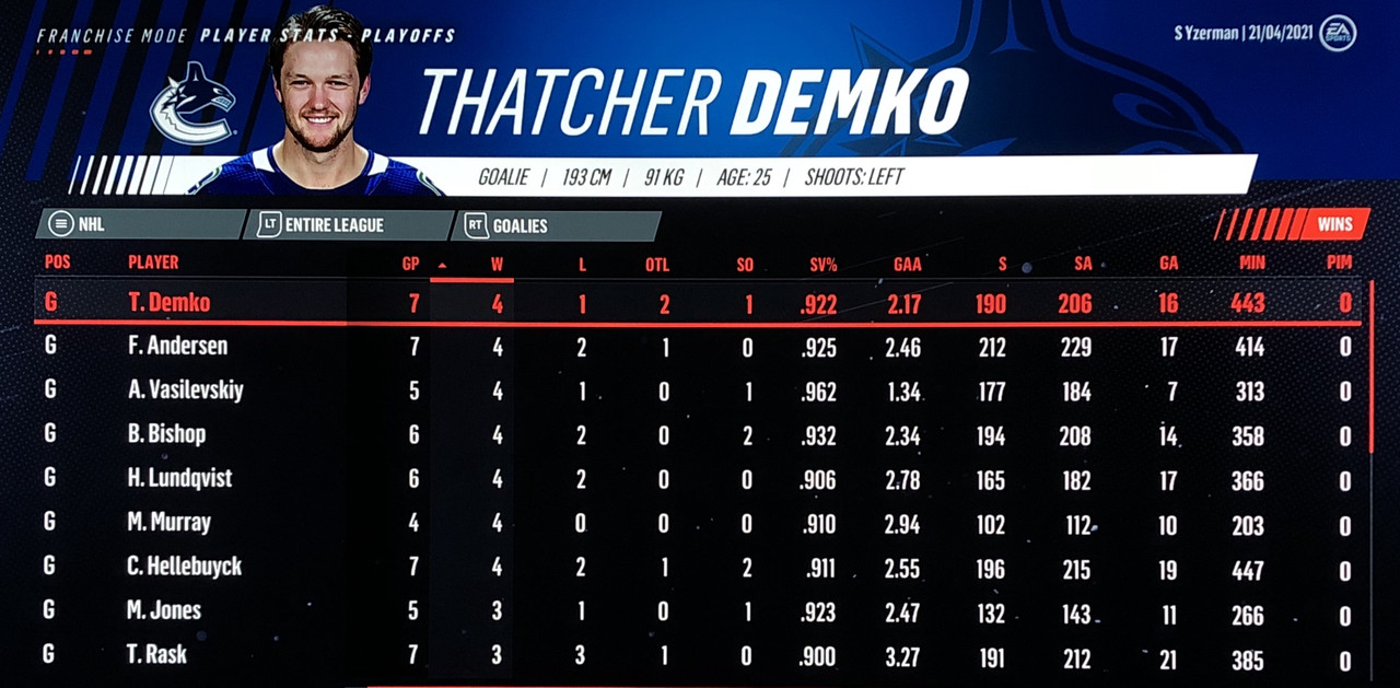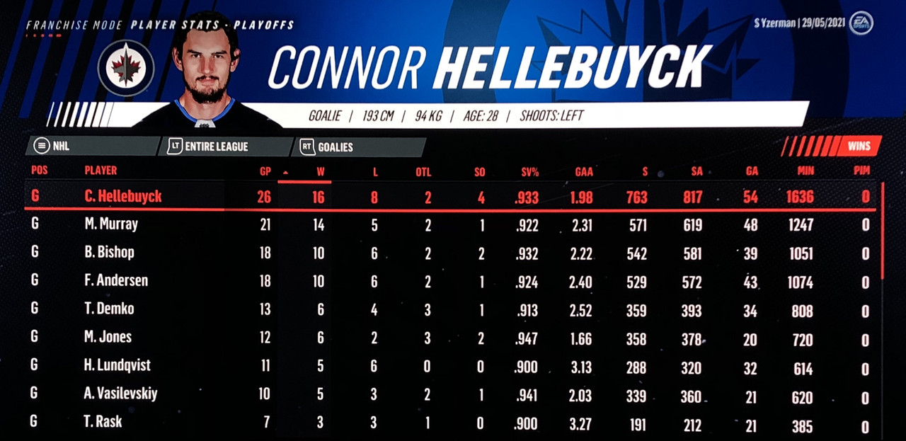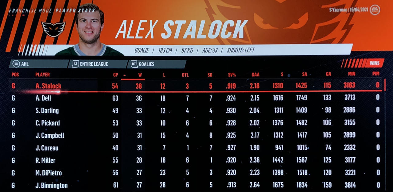 Goalie Stats: