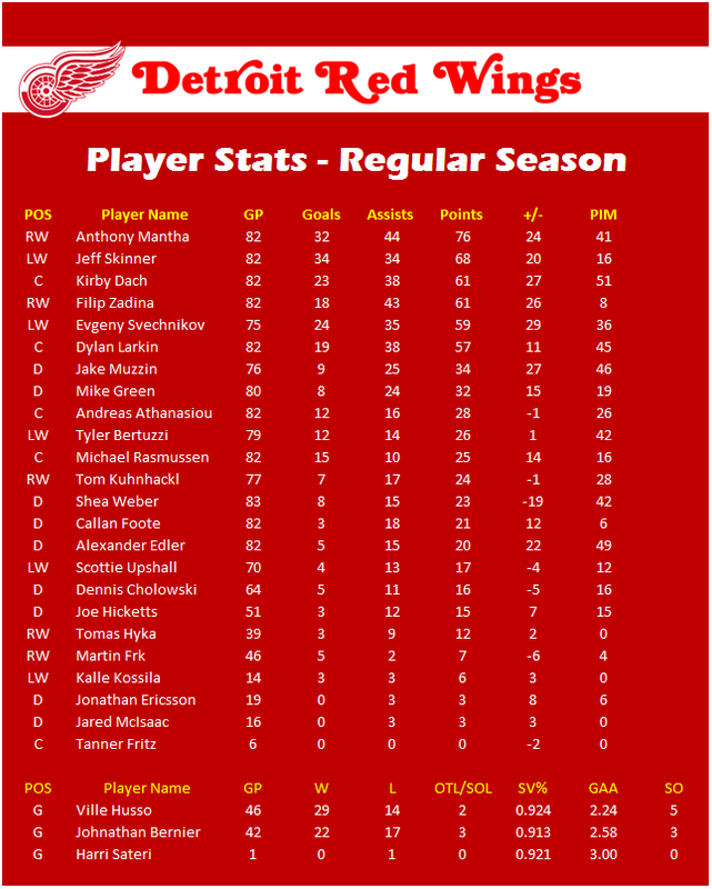 Awesome regular season! Good luck in the playoffs Red Wings!