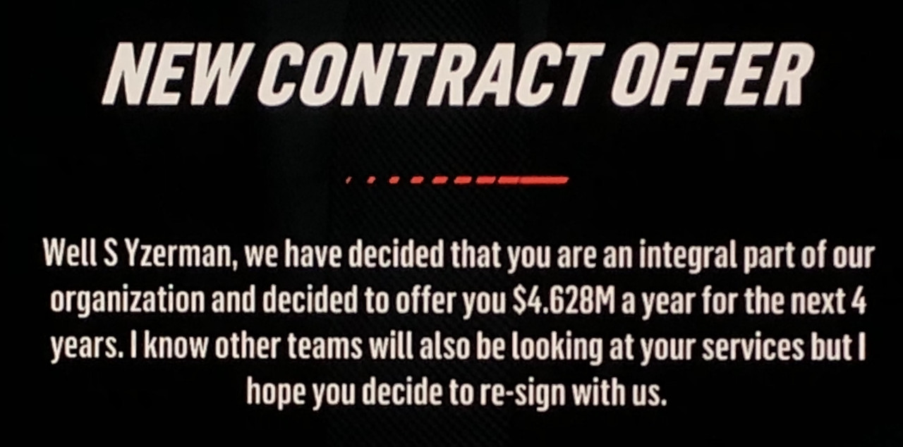 Sure, I got various offers from other teams like Boston, Buffalo, Calgary, Dallas, Minnesota, even Tampa Bay asked me to come back, but Detroit is where the home and the heart is. 4 more years of Steve!