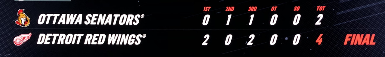 No score would eventuate in overtime and in the shout out, Dylan Larkin scored the only goal to give the Wings their 4th consecutive win.