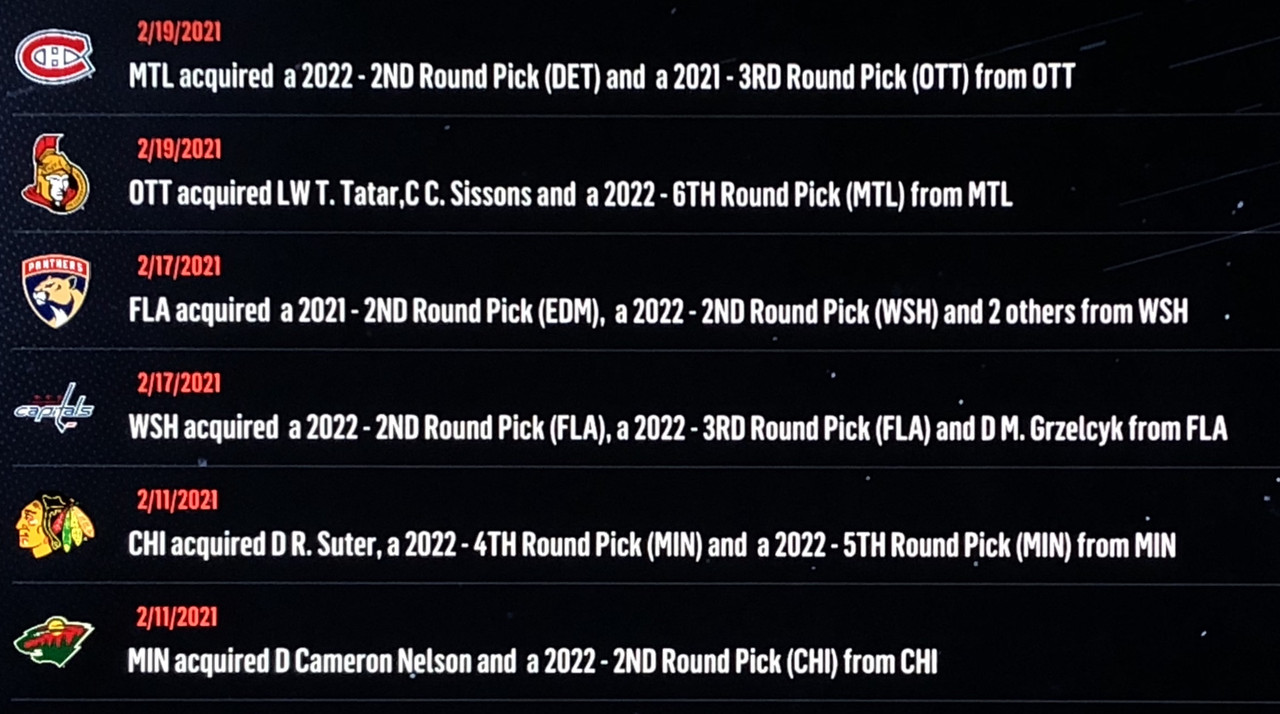 Here are all of the trades that occurred in the month lead up to the NHL Trade Deadline: