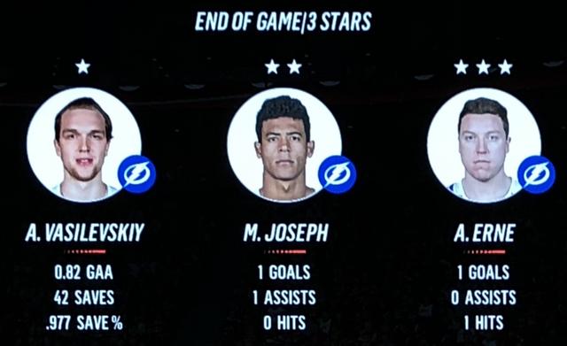 Kirby Dach netted another during the 3rd to make a 2 goal buffer, which was tested a little later when Alex Killorn scored to bring the difference back to 1.