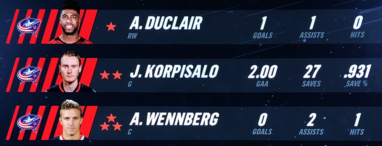 3 Stars of the Game: