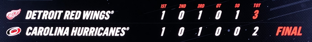 Detroit completes the Home / away double header with 2 wins as they pull out a 3-2 shootout victory over the Carolina Hurricanes.