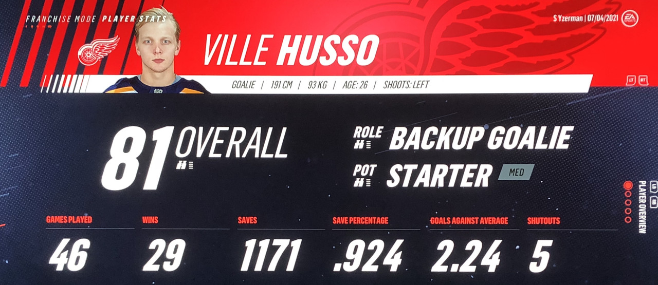 Ville Husso recovered well from his terrible last outing, making 32 saves in tonight’s victory.