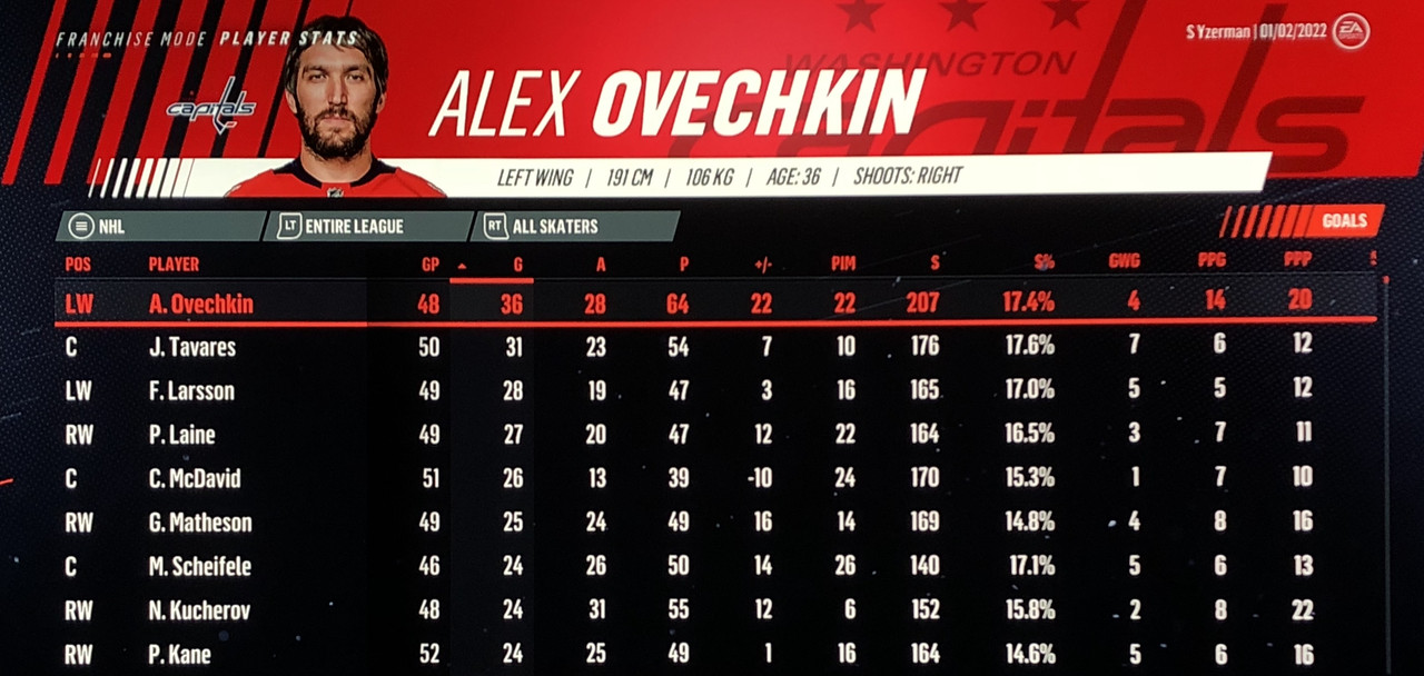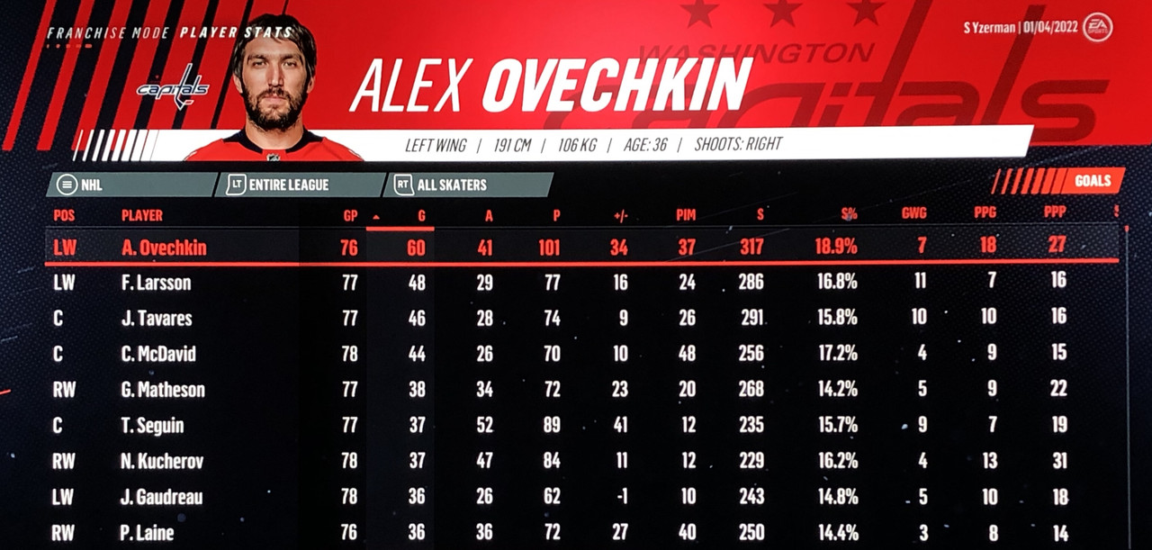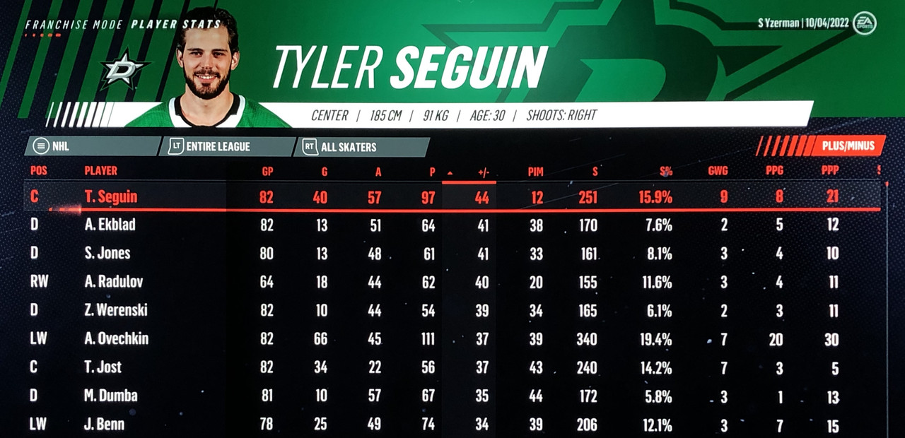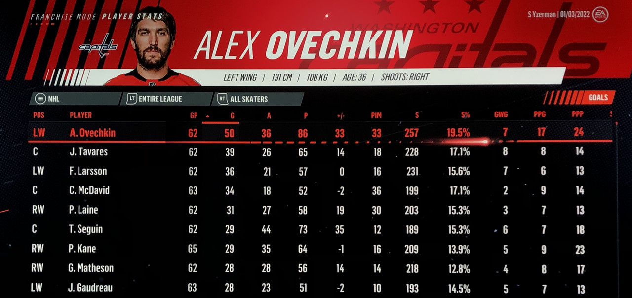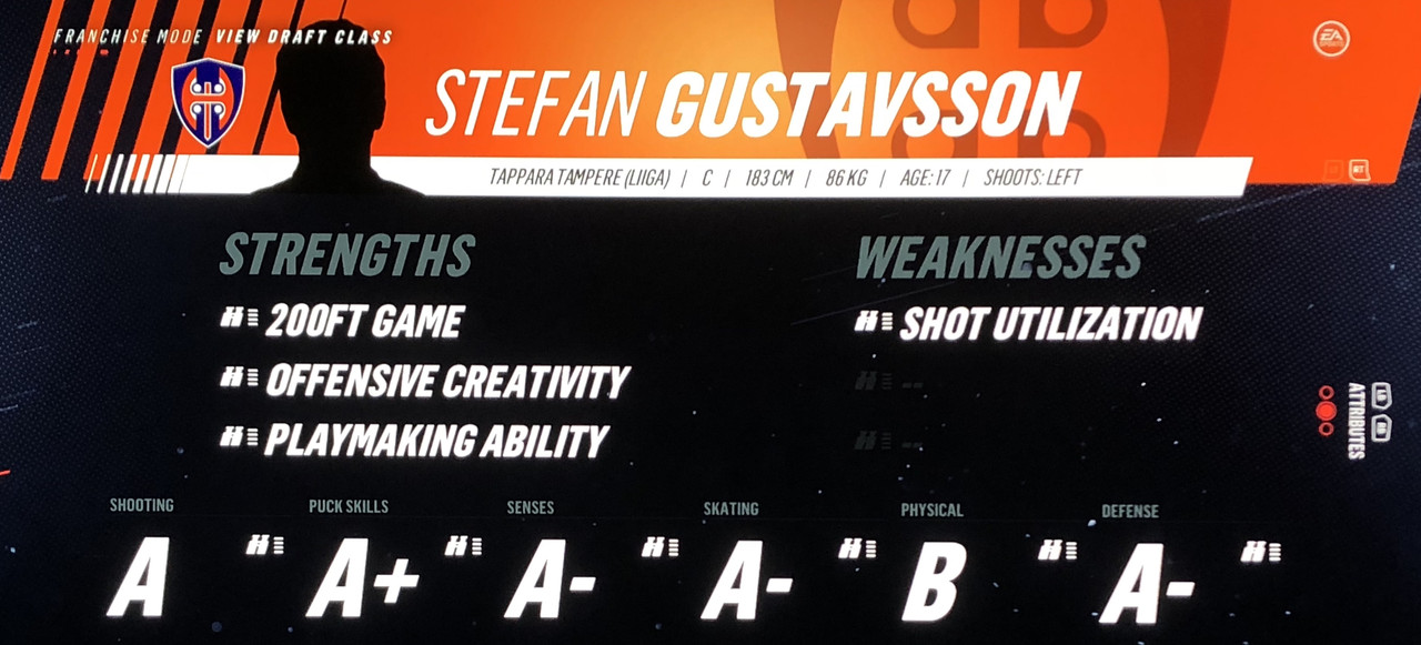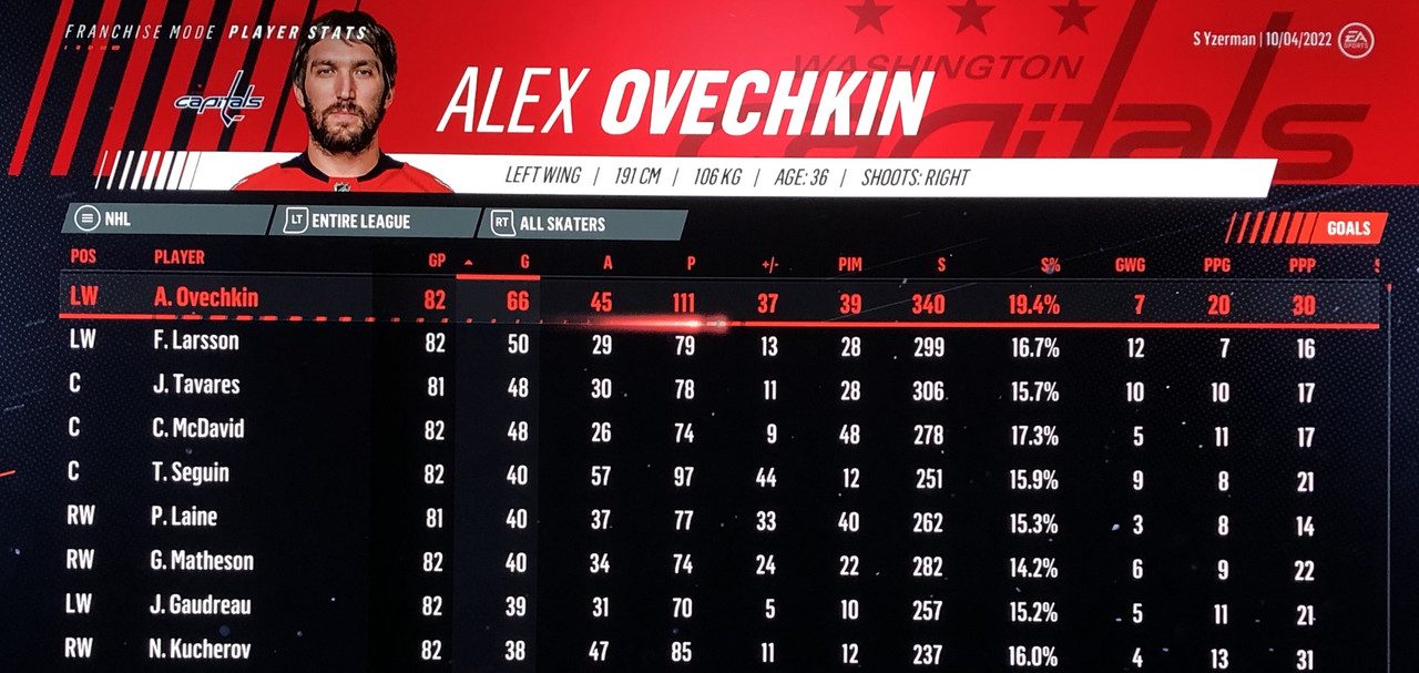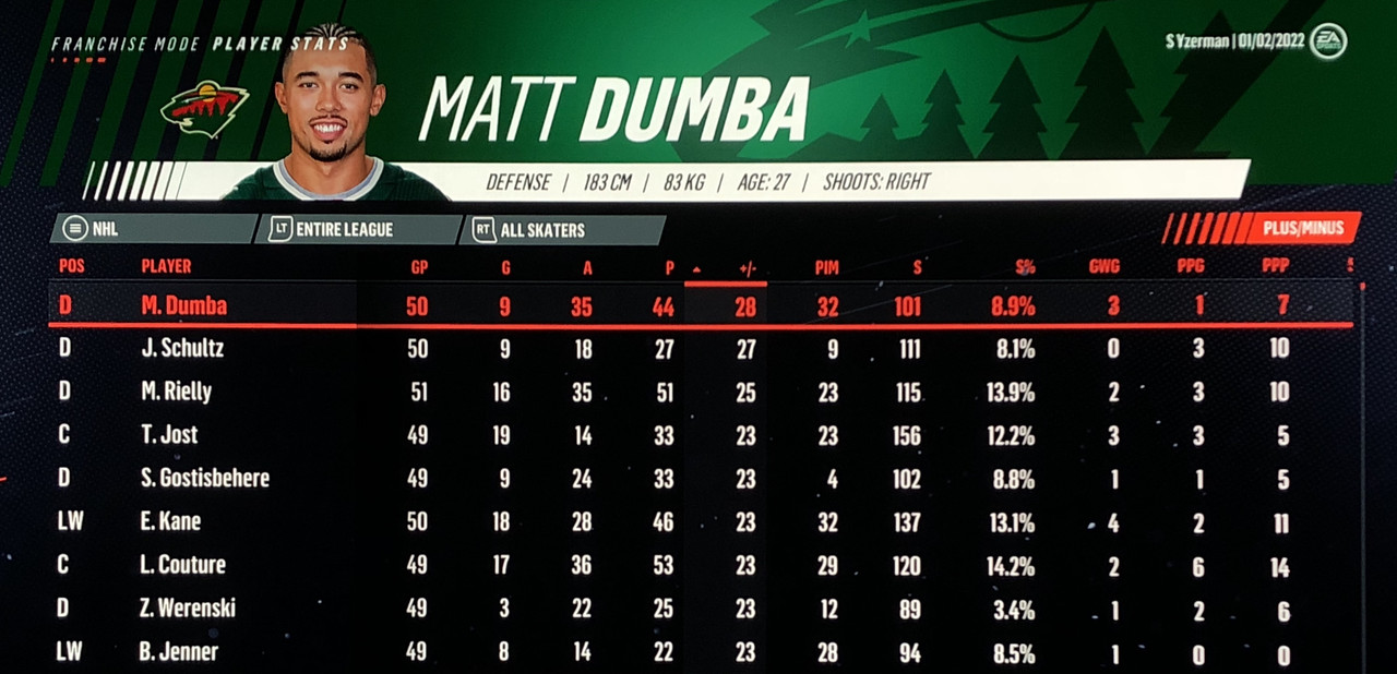 I have to admit, part way into this season, I was looking at George Matheson’s (Florida’s #2 pick in 2021) stats with envy, thinking I might have picked the wrong guy, but then Larsson really picked up a notch & proved his worth. (In recent years of simming EA NHL games I don’t think I have ever seen two rookies score so many goals combined in one season – combined they scored 90!)