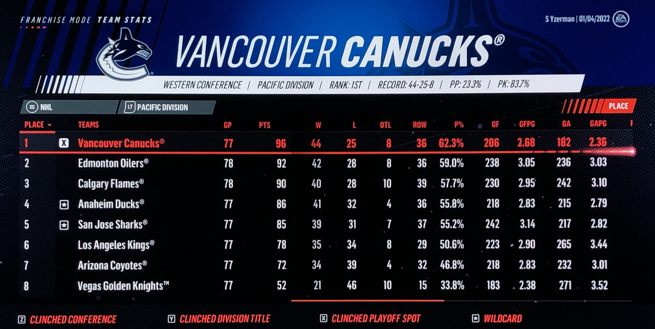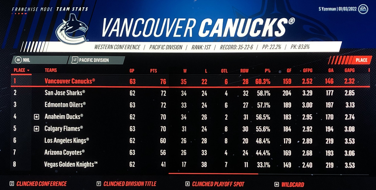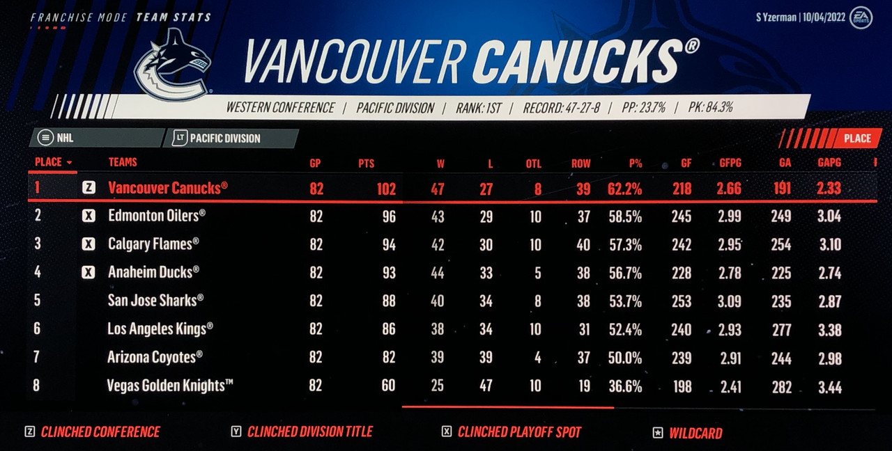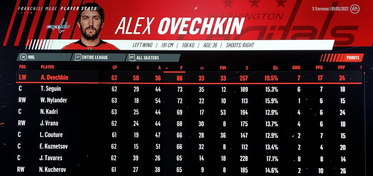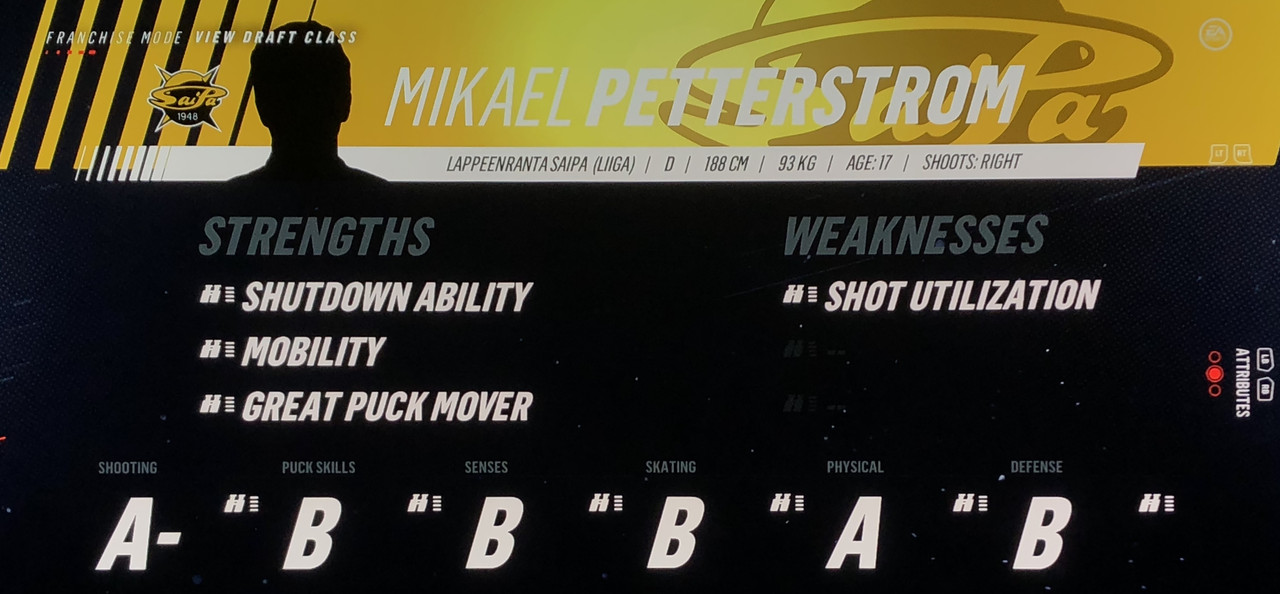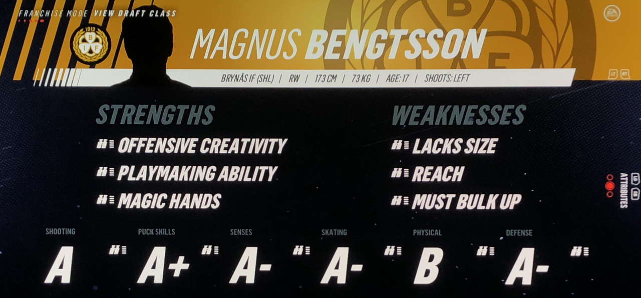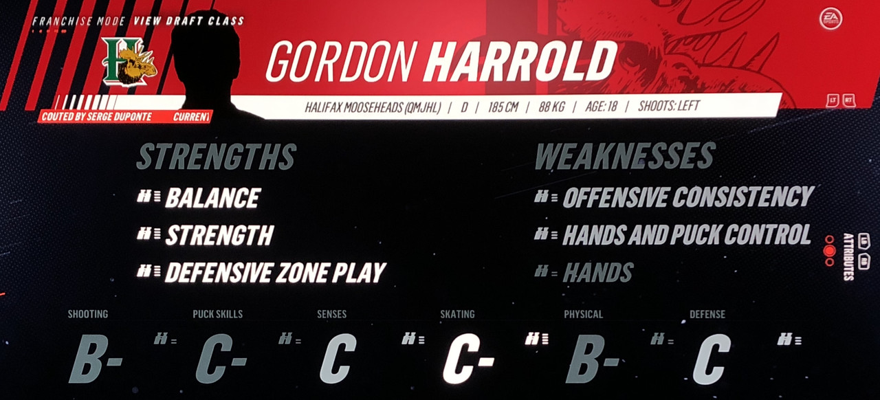I have to admit, part way into this season, I was looking at George Matheson’s (Florida’s #2 pick in 2021) stats with envy, thinking I might have picked the wrong guy, but then Larsson really picked up a notch & proved his worth. (In recent years of simming EA NHL games I don’t think I have ever seen two rookies score so many goals combined in one season – combined they scored 90!)