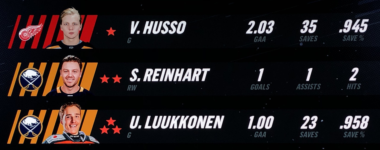 The Sabres chose to start backup goalie, Ukko-Pekka Luukonen & paid the price as he proceeded to allow 6 goals through to 5 minutes into the final period before being pulled in favour of regular starting goalie Jusse Saros.