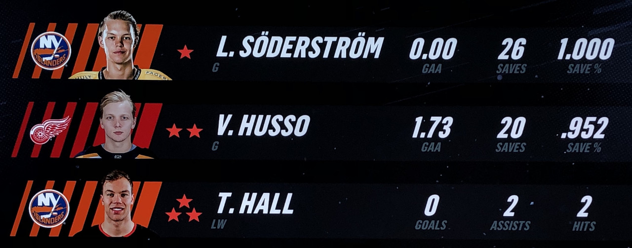 Islanders goalie, Linus Soderstrom made 26 saves on his way to a well-deserved shutout, whilst at the other end, Johnathan Bernier was swapped out for Ville Husso after allowing 3 goals late in the 2nd period. Ville Husso faced a flurry of shots in the final period, allowing 1 goal from 20 shots faced.