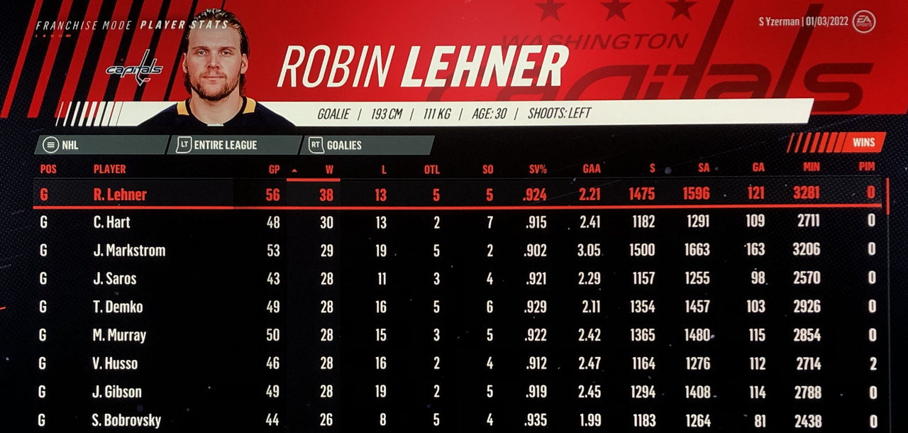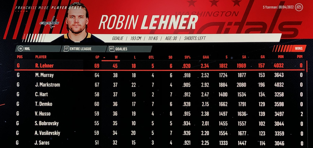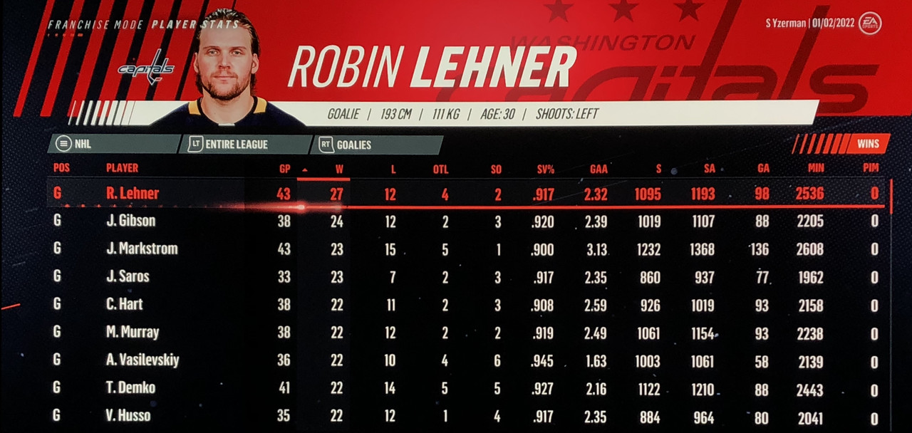 Goalie Stats: