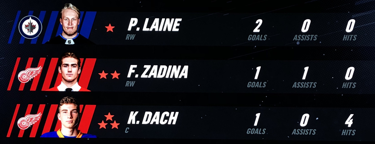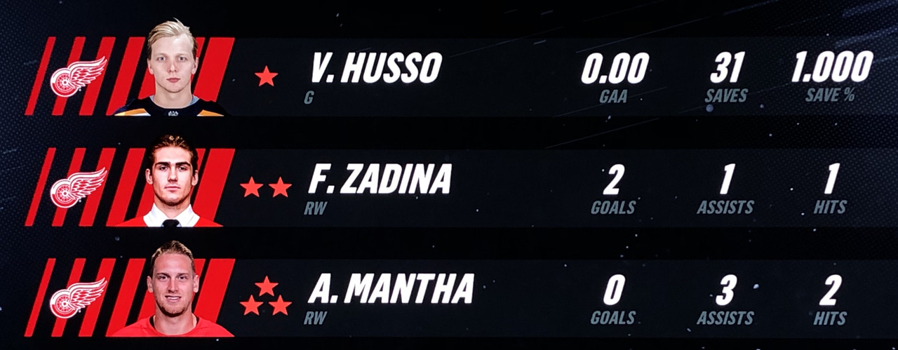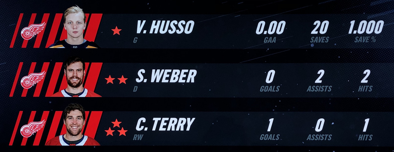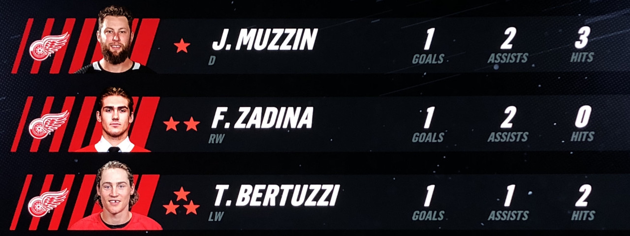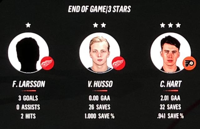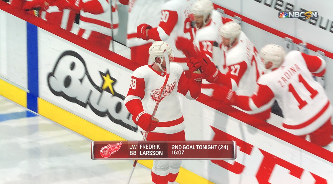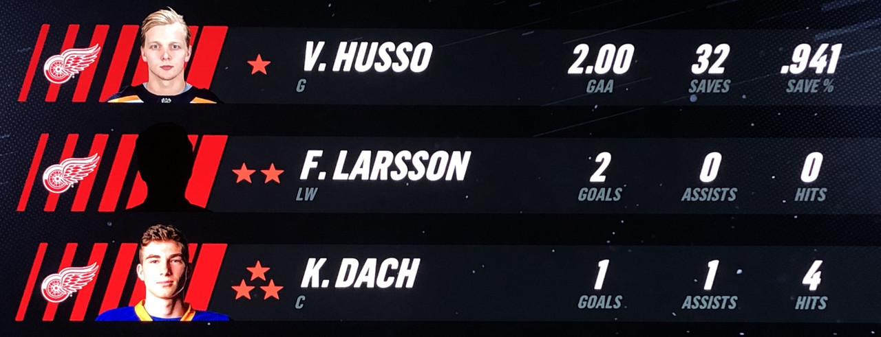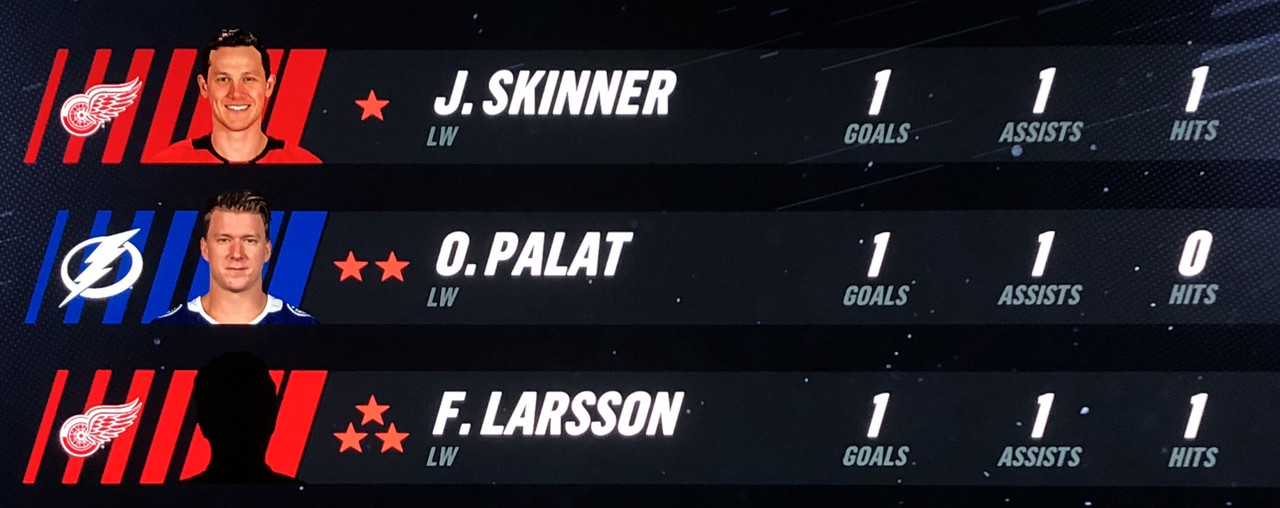 Larsson Was brilliant in his performance, with Blashill relocating him to the 1st line with Mantha & Dach, who were awarded the 2nd & 3rd Stars in a great line chemistry performance.