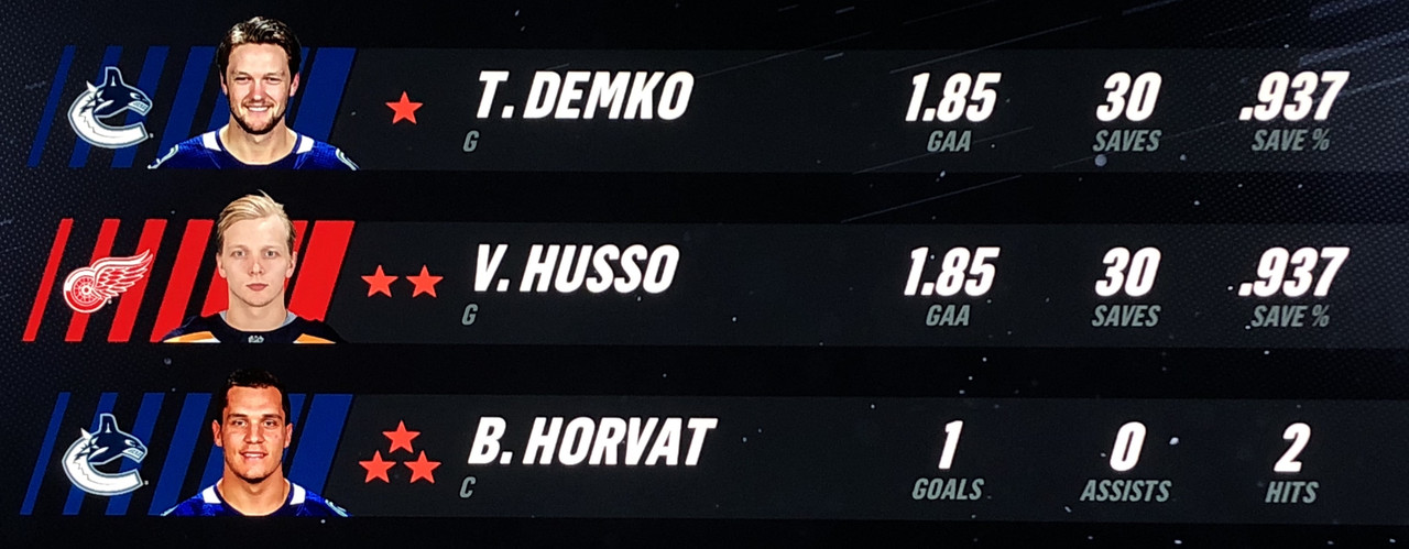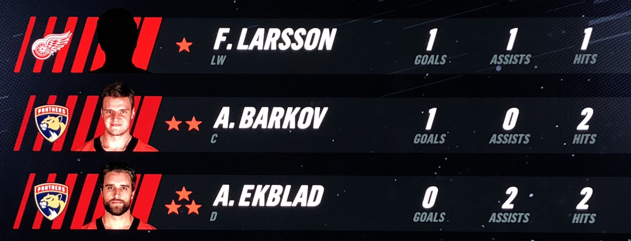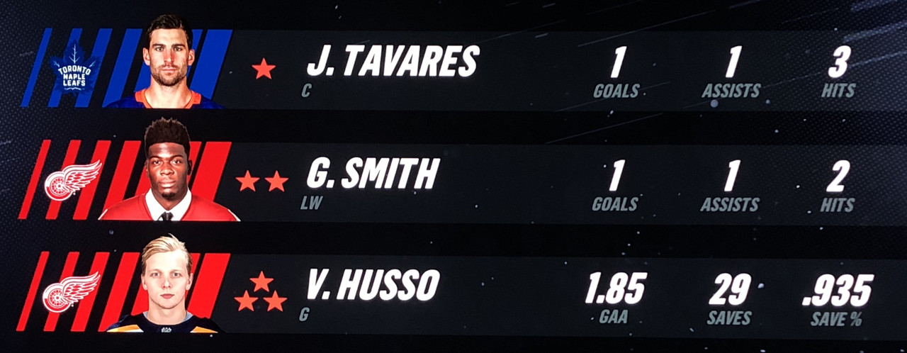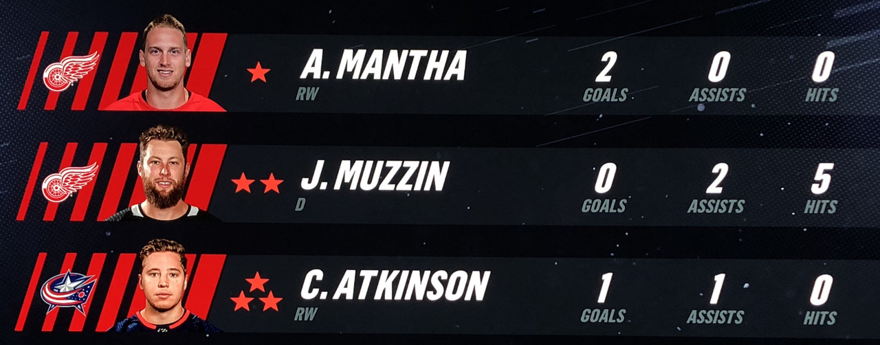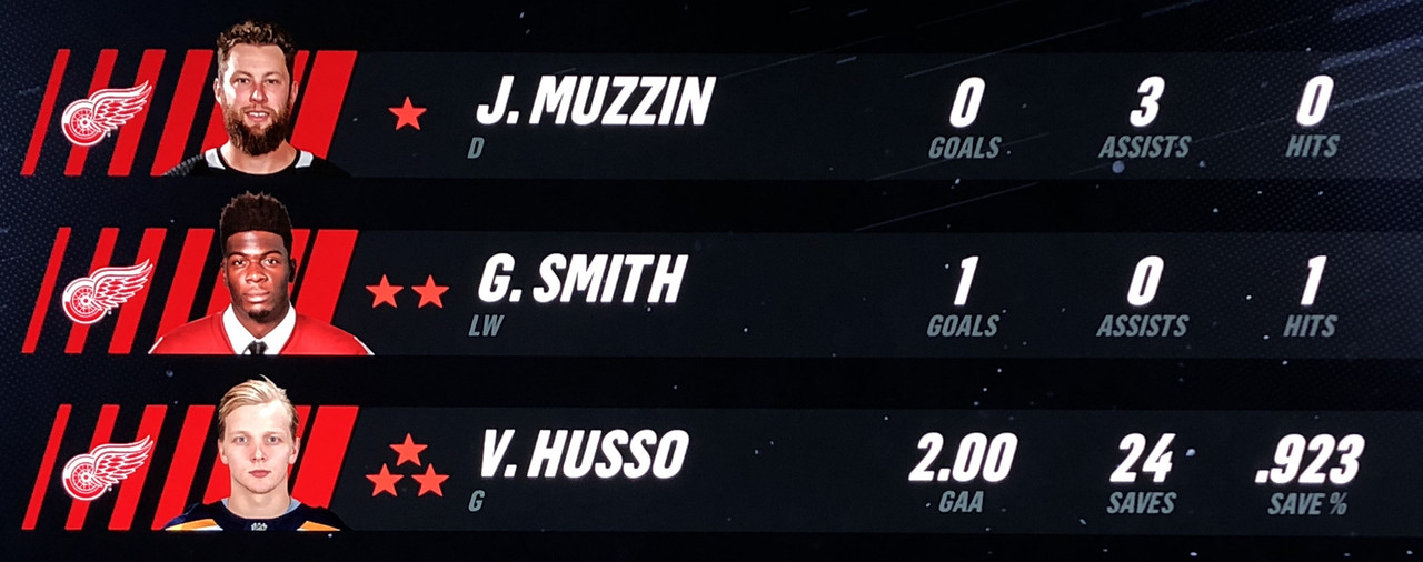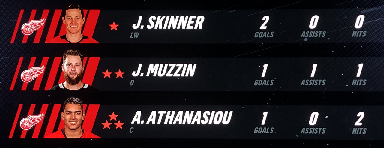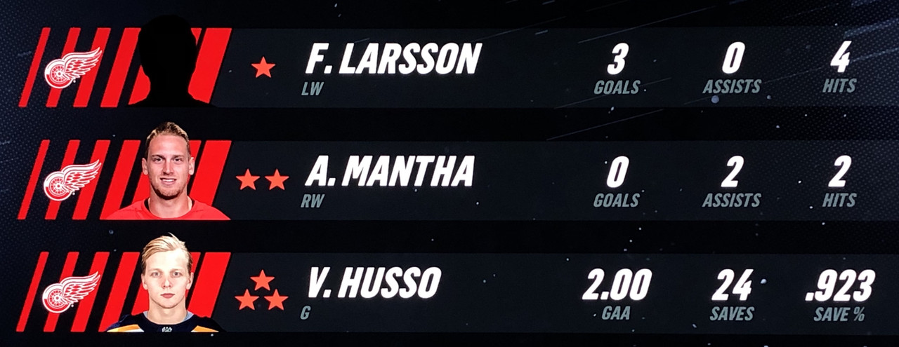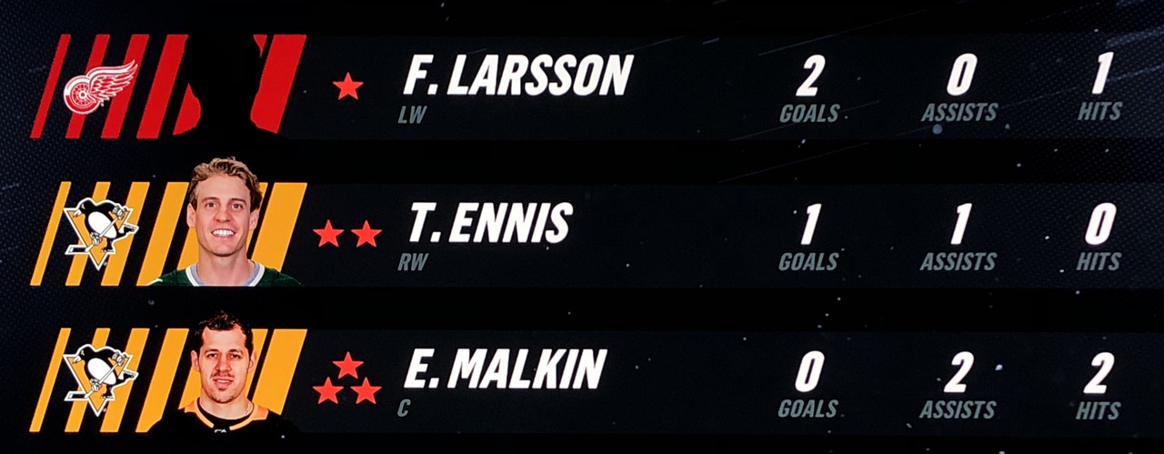 Larsson Was brilliant in his performance, with Blashill relocating him to the 1st line with Mantha & Dach, who were awarded the 2nd & 3rd Stars in a great line chemistry performance.