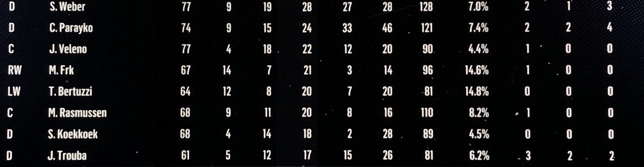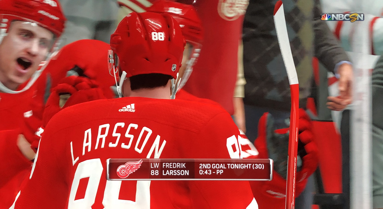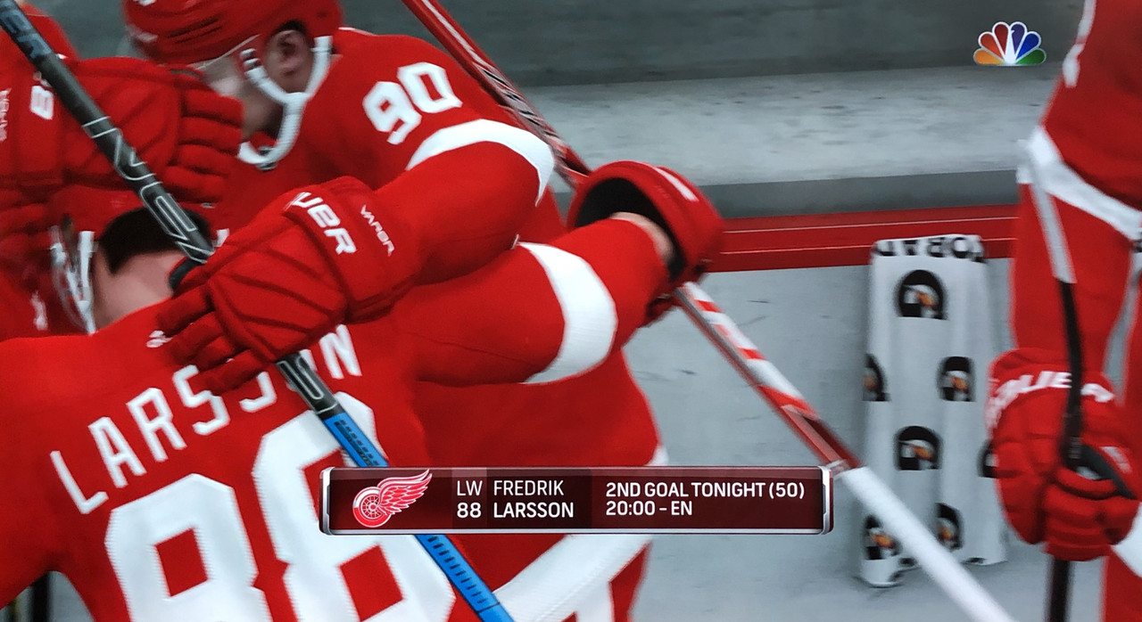 The Larsson / Matheson rivalry continues with both rookies scoring a goal each in tonight’s game. For Larsson, it was his 8th goal in 4 games.