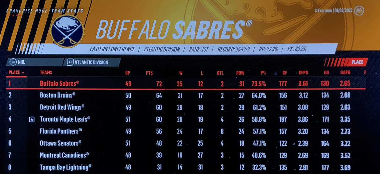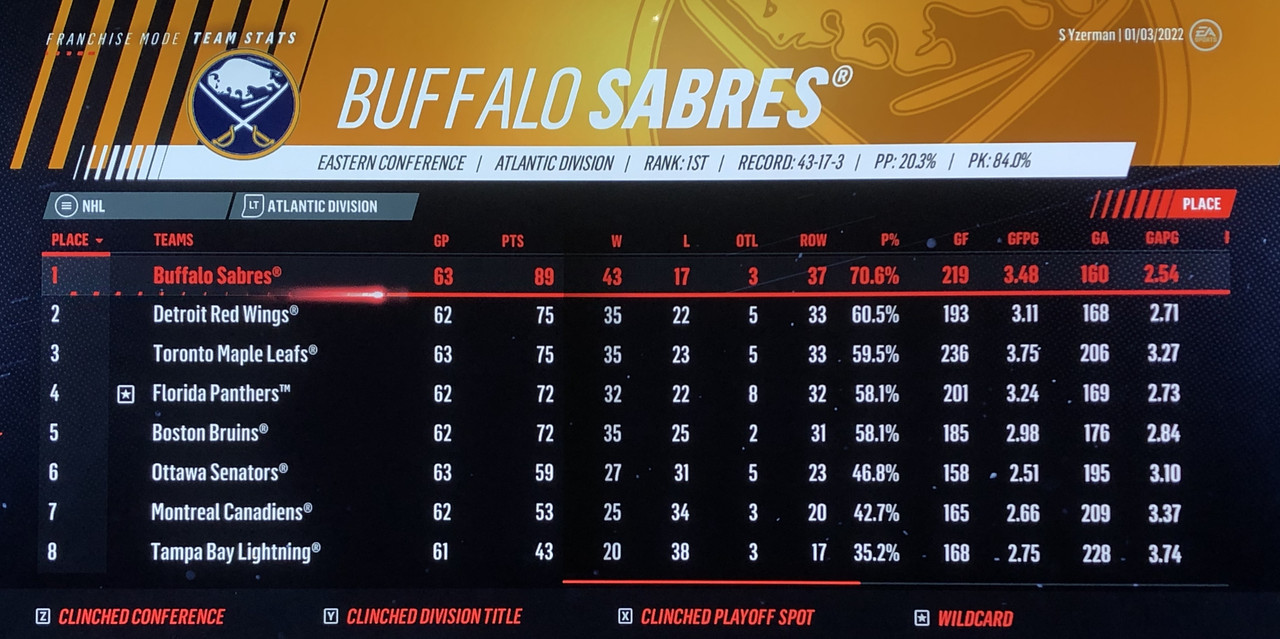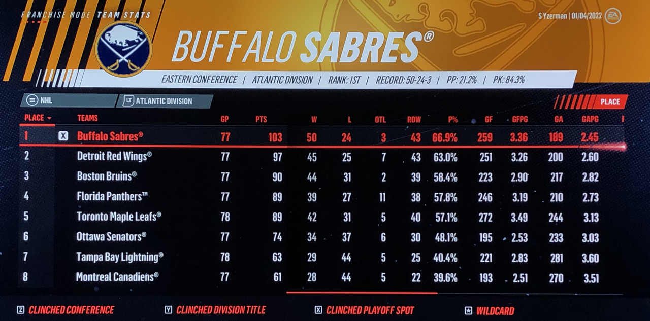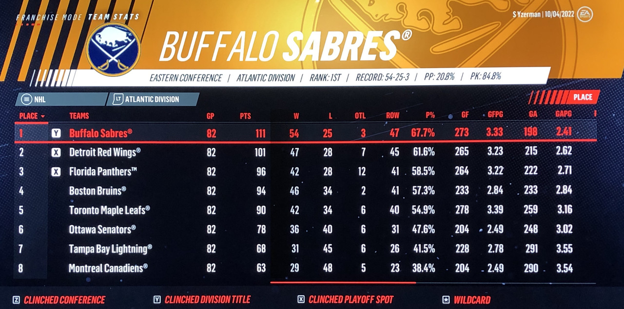 7th April VS Buffalo Sabres (1st Atlantic)