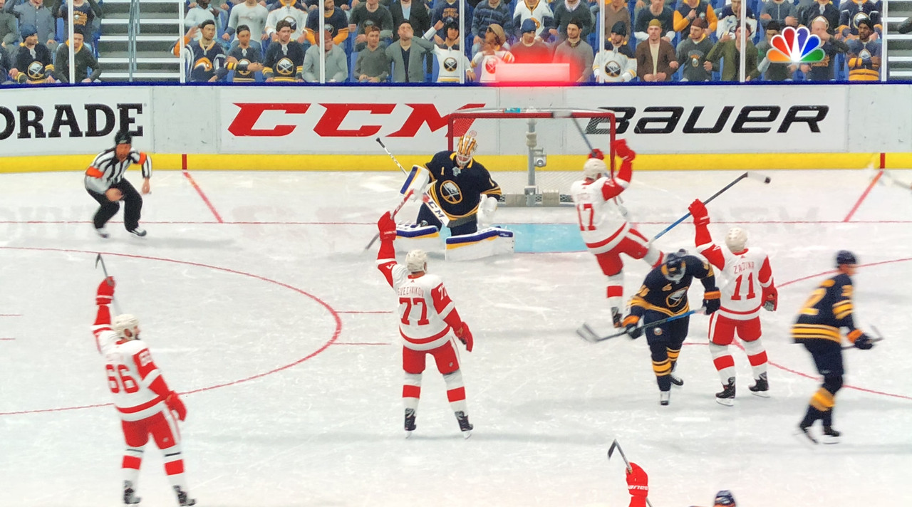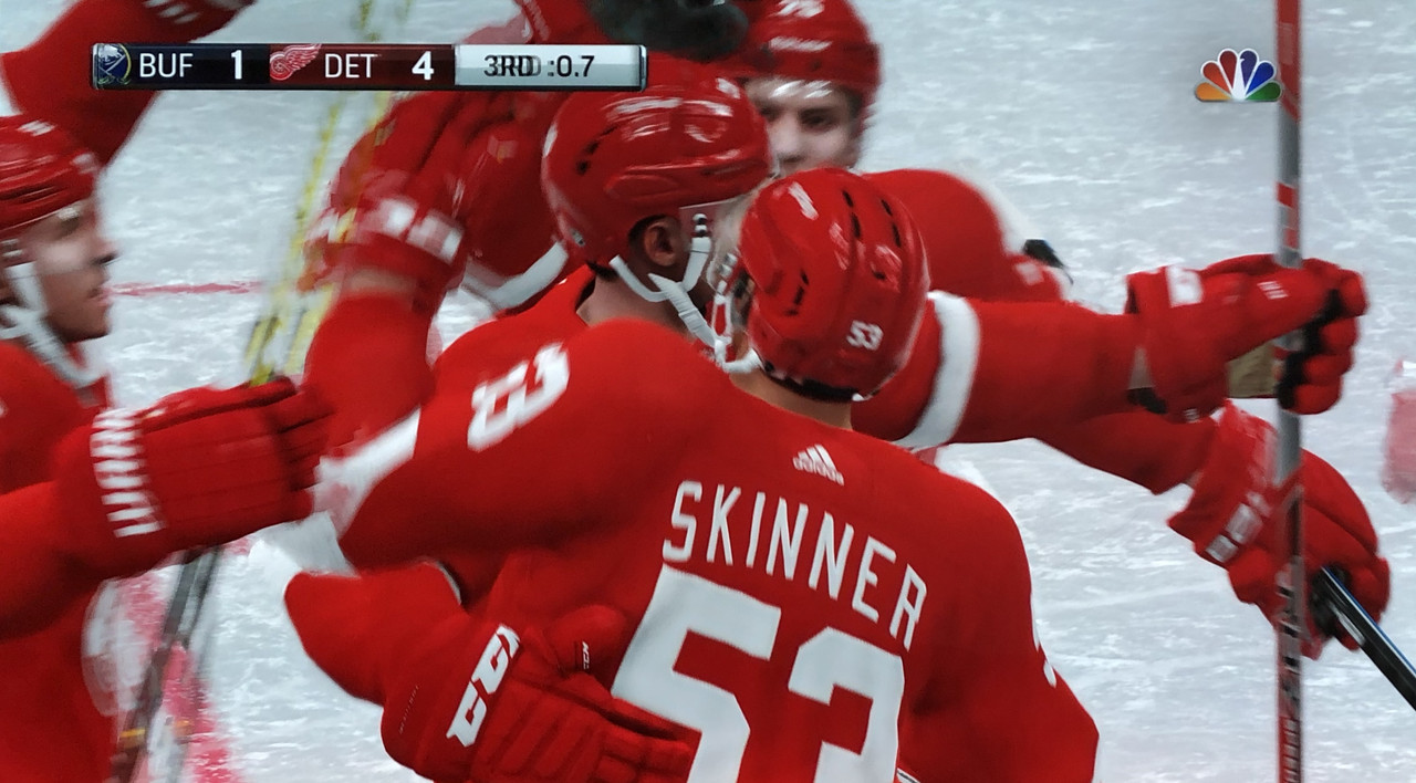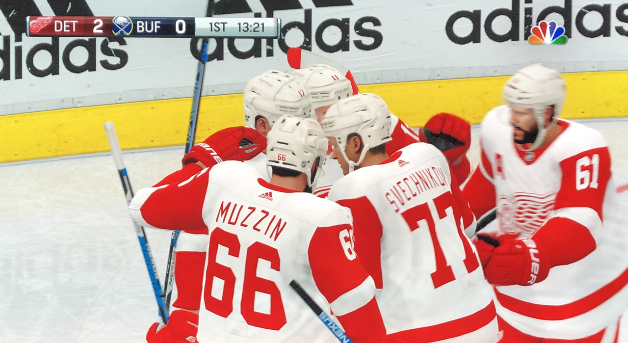 Don’t adjust your TV sets, the Red Wings have punished the Sabres sloppy goaltending with an 8-3 victory over the league leaders at Keybank Arena.