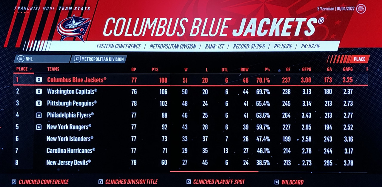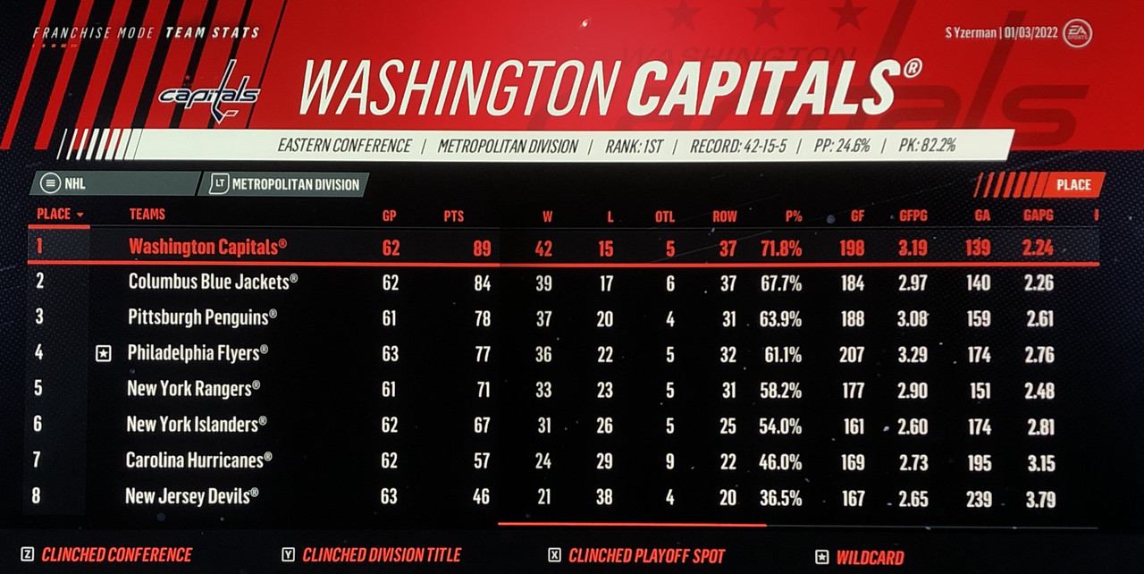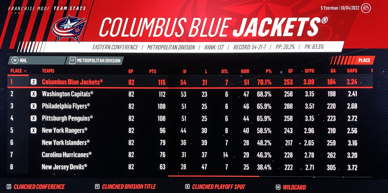 Overall Record: 47-28-7 (Finished 2nd in Atlantic Division)