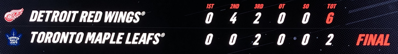 The Red Wings well & truly had the game sealed by the end of the 2nd period, leading 4-0. They had the score blown out to 6-0, however the Leafs were able rake in 2 late “junk time” goals when the Red Wings let the foot off the gas pedal.