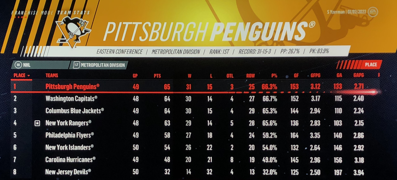 3rd April @ Pittsburgh Penguins (3rd Metropolitan)