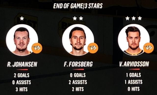 Larsson scored twice in the 2nd period to put the visitors in front, then was able to find the empty net in the dying seconds of the final period to give him his 6th goal in 2 games.
