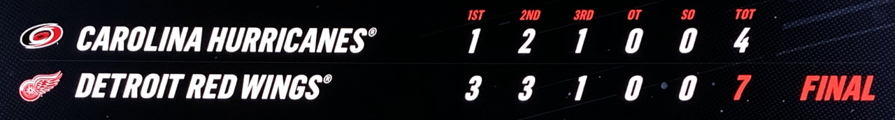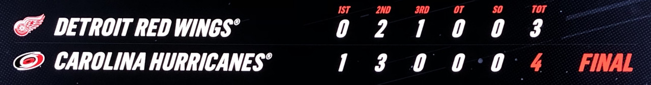 The Red Wings can’t get it done against the Hurricanes tonight, going down to the home side 4-3.