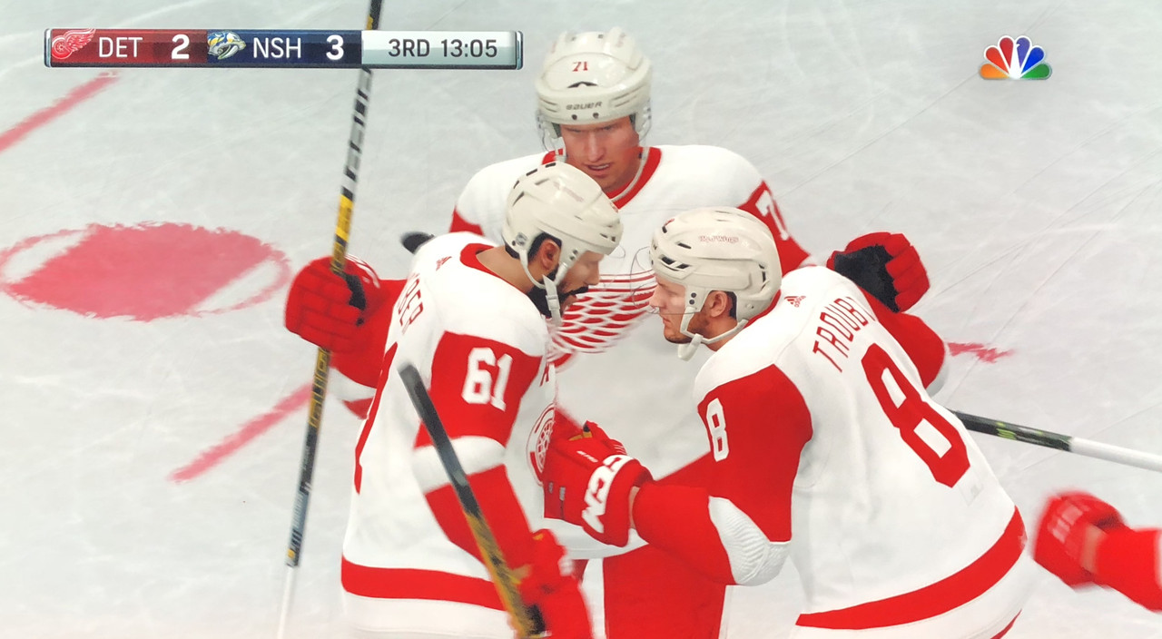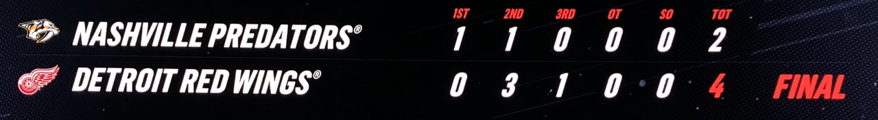 A 3 goal 2nd period sets up the Red Wings for a 4-2 victory over the Nashville Predators at home.