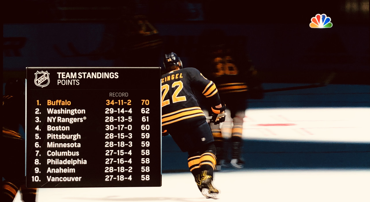 From tonight’s loss, the Bruins reduce the gap to the 2nd placed Red Wings to 5 points.