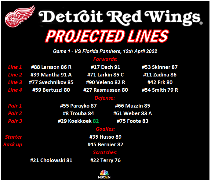 Projected Lines – Game 1 vs Florida Panthers