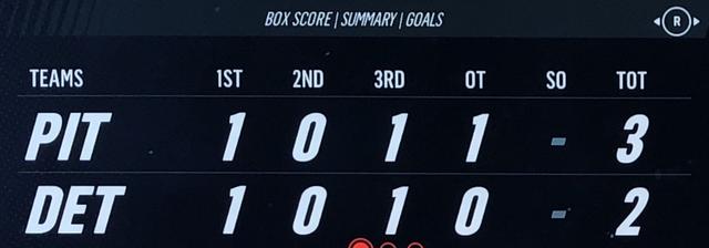 The Red Wings finish the New Year’s double header (played Rangers on the 31st Dec) with a 2nd loss, going down to the Penguins 4-3 at Little Caesars Arena.