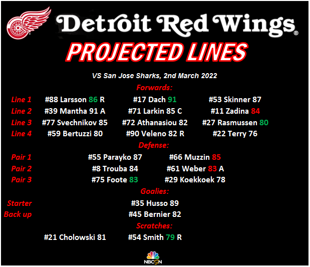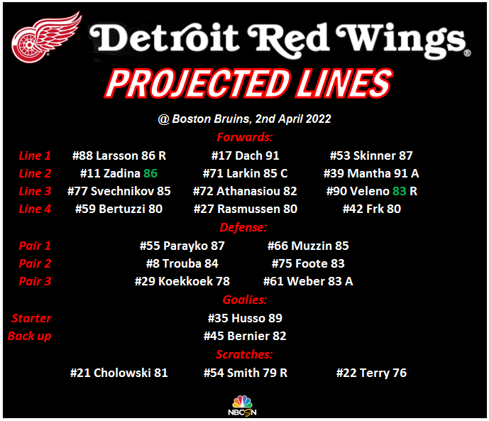 Projected Lines - 2nd April, Detroit Red Wings @ Boston Bruins