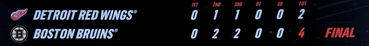 The Bruins had the upper hand for most of the game & in the final period, the home side blew the lead out to 2 goals & the Red Wings could not respond.