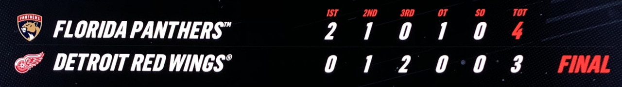 Detroit pick up a point, however they lose in overtime to the Panthers at home.