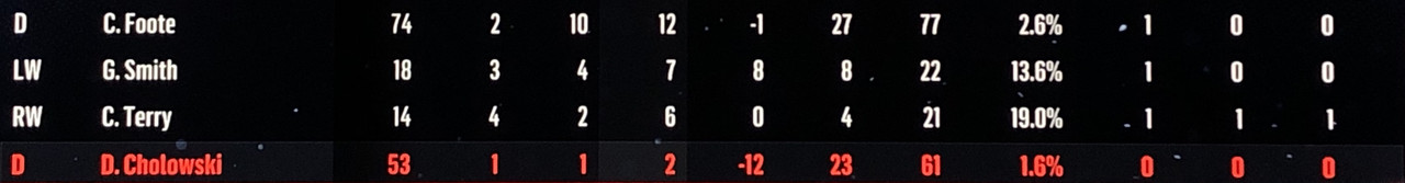 The move to bring Skinner up to the 1st line & Mantha back to the 2nd line appears to have paid off in spades, with Mantha improving from a plus/minus of -7 to 0, whilst Larsson improved from 0 to +16.