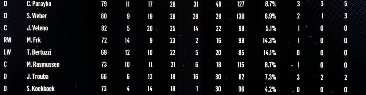 Larsson was at his best once again scoring 12 goals, plus tallying 8 assists for 20 points. His season total sits at 48, only 2 away from a magical 50 goals, which has not been achieved by a rookie since Alex Ovechkin in 05/06.