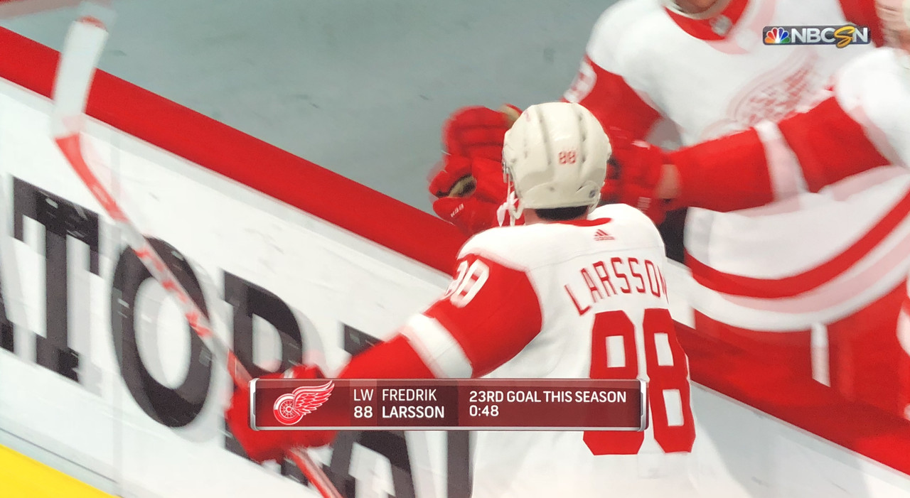 Fredrik Larsson scores his 1st career hat-trick to help the Red Wing’s snap their 4 game losing streak, with a 6-2 defeat of the Chicago Blackhawks at home.